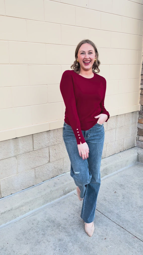 Winter Whimsy Eyelet Trim Top in Blue
