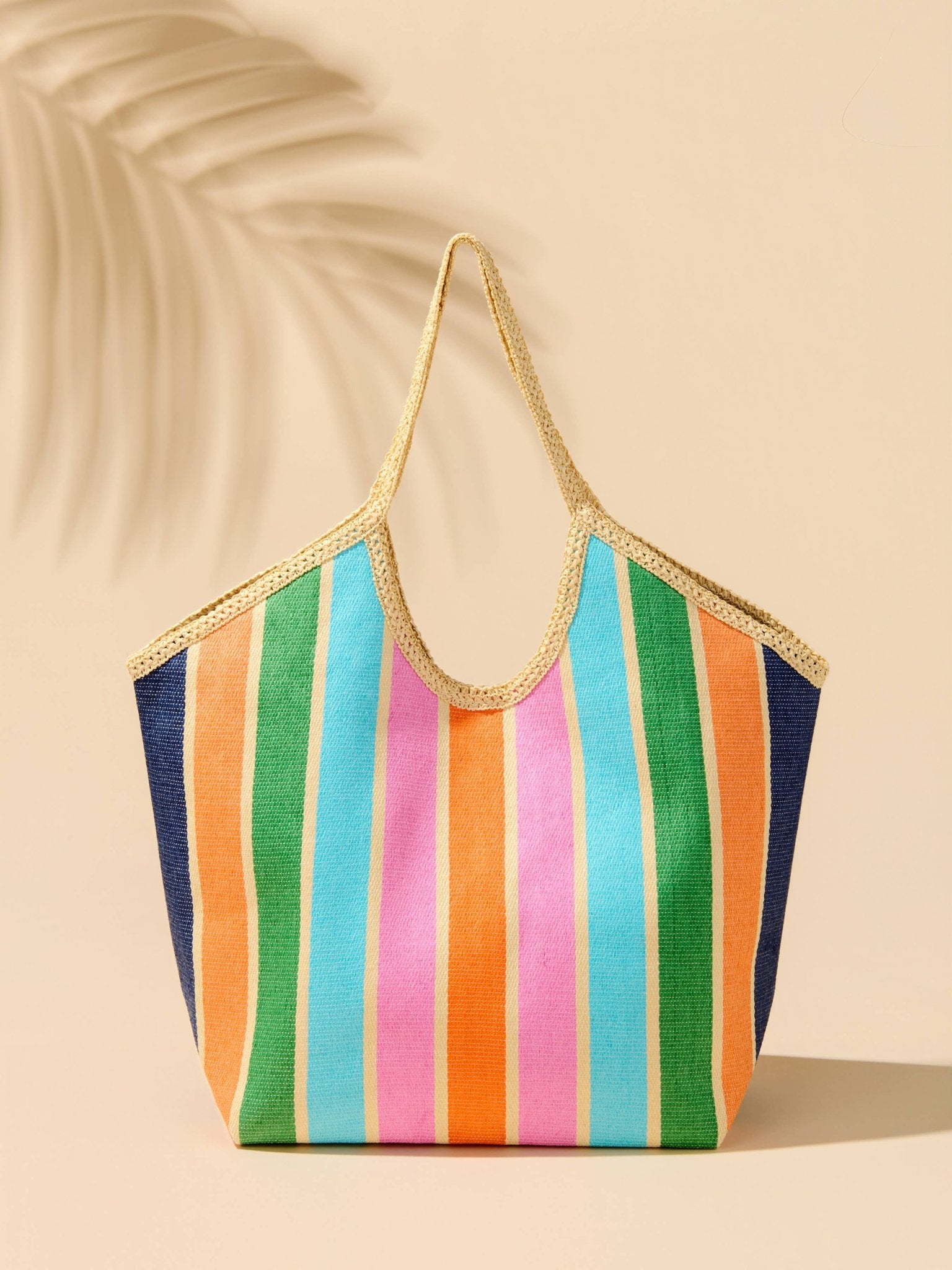 Bring a little sunshine wherever you go with the Sunset Stripe Capri Tote. Designed with vibrant multicolored stripes and a roomy silhouette, this woven paper straw tote is ready for beach days, market strolls, and everything in between. The double shoulder straps offer comfortable wear, while a magnetic snap closure keeps your essentials secure. Inside, a convenient slip pocket makes it easy to grab your phone, keys, or sunnies on the go. Bold, playful, and effortlessly chic, this tote adds a pop of personality to any outfit. Pair it with the coordinating zip pouch for an extra splash of color and easy organization.