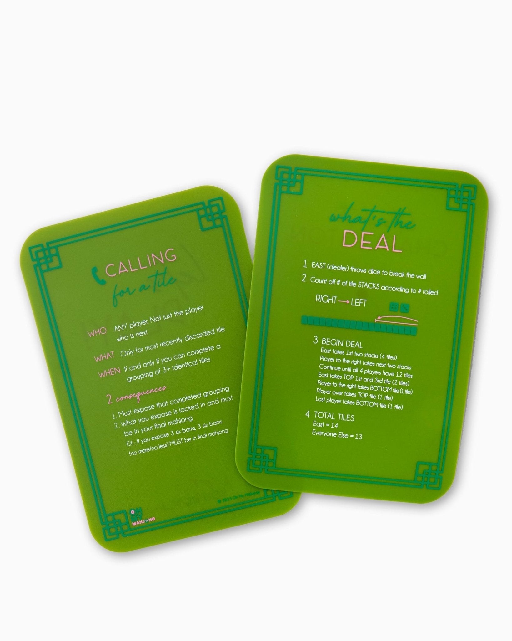 Featuring a sleek olive design and printed rules and tips along all four sides, each shuffler is as practical as it is stylish. Lightweight yet sturdy, they’re easy to use and simple to store, making them a must-have addition to any Mahjong collection. Perfect for new players, seasoned pros, and anyone who loves a smooth, seamless game. All Oh My Mahjong items are FINAL SALE.