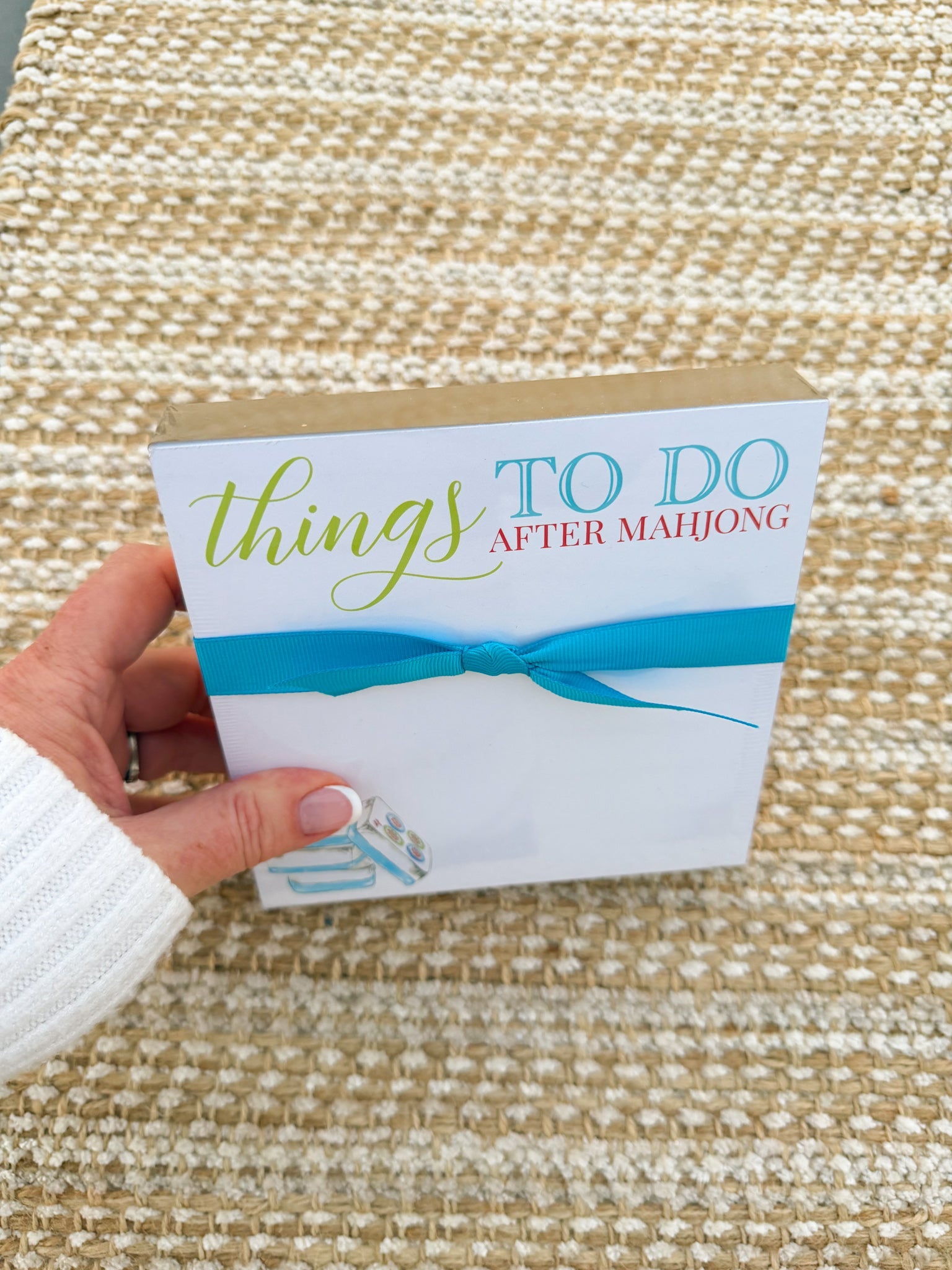 The Things To Do After Mahjong Luxe Notepad is the ultimate desk or game-night companion for every Mahjong enthusiast! With its witty title and elegant design, this notepad adds a little humor and a lot of style to your note-taking. Featuring gilded gold edges, thick card stock pages, and a coordinating ribbon, it’s perfect for jotting down to-dos, Mahjong scores, or your next big idea—after the tiles are packed away, of course!