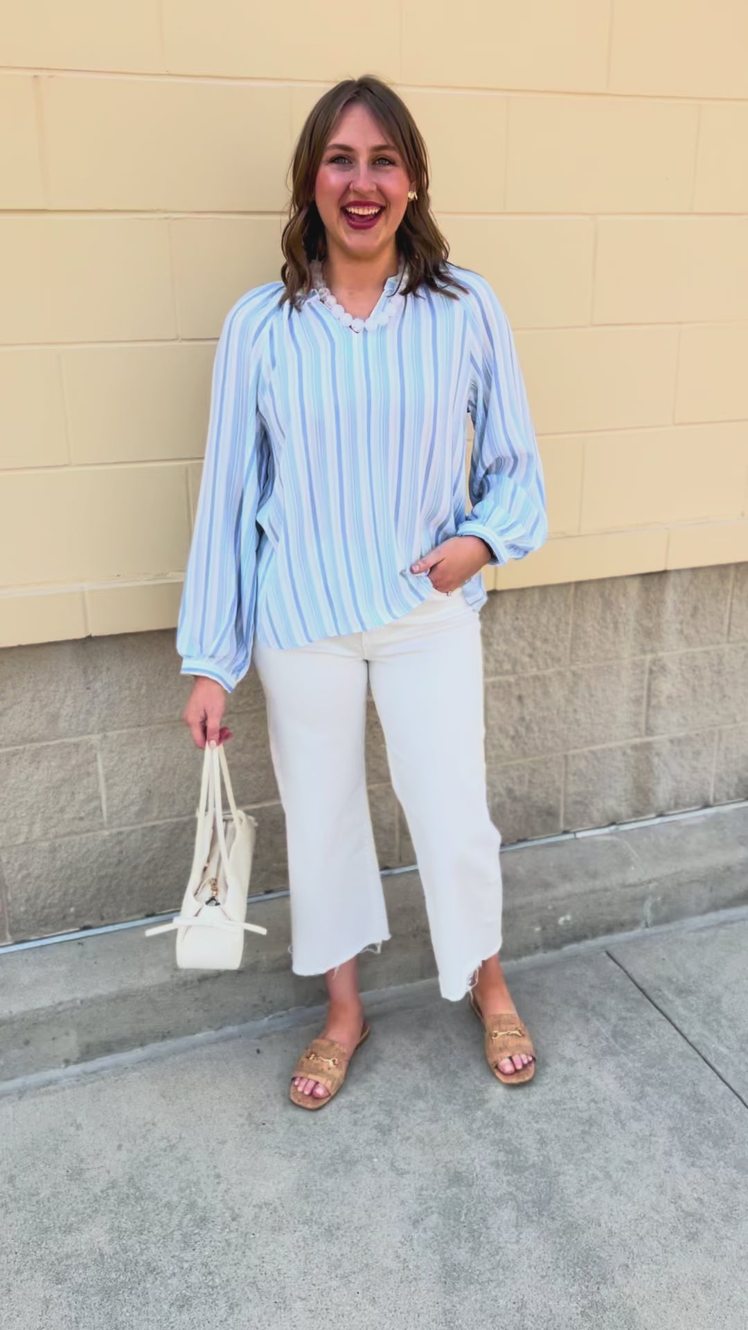 The airy feel makes it perfect for everything from busy mornings to laid-back afternoons, while the timeless stripe pattern keeps it versatile enough to dress up or down. Whether you’re heading into the office, meeting friends for lunch, or planning a weekend getaway, this blouse brings that clean, put-together look with minimal effort.
