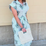 Fresh, feminine, and effortlessly chic, the Minted Garden Midi Dress is a spring-ready wardrobe staple. Crafted in soft mint and white stripes with delicate floral detailing, this dress brings a touch of garden-inspired charm to your look. The front-tie belt cinches at the waist for a flattering silhouette, while the button-up design adds a timeless, polished touch.