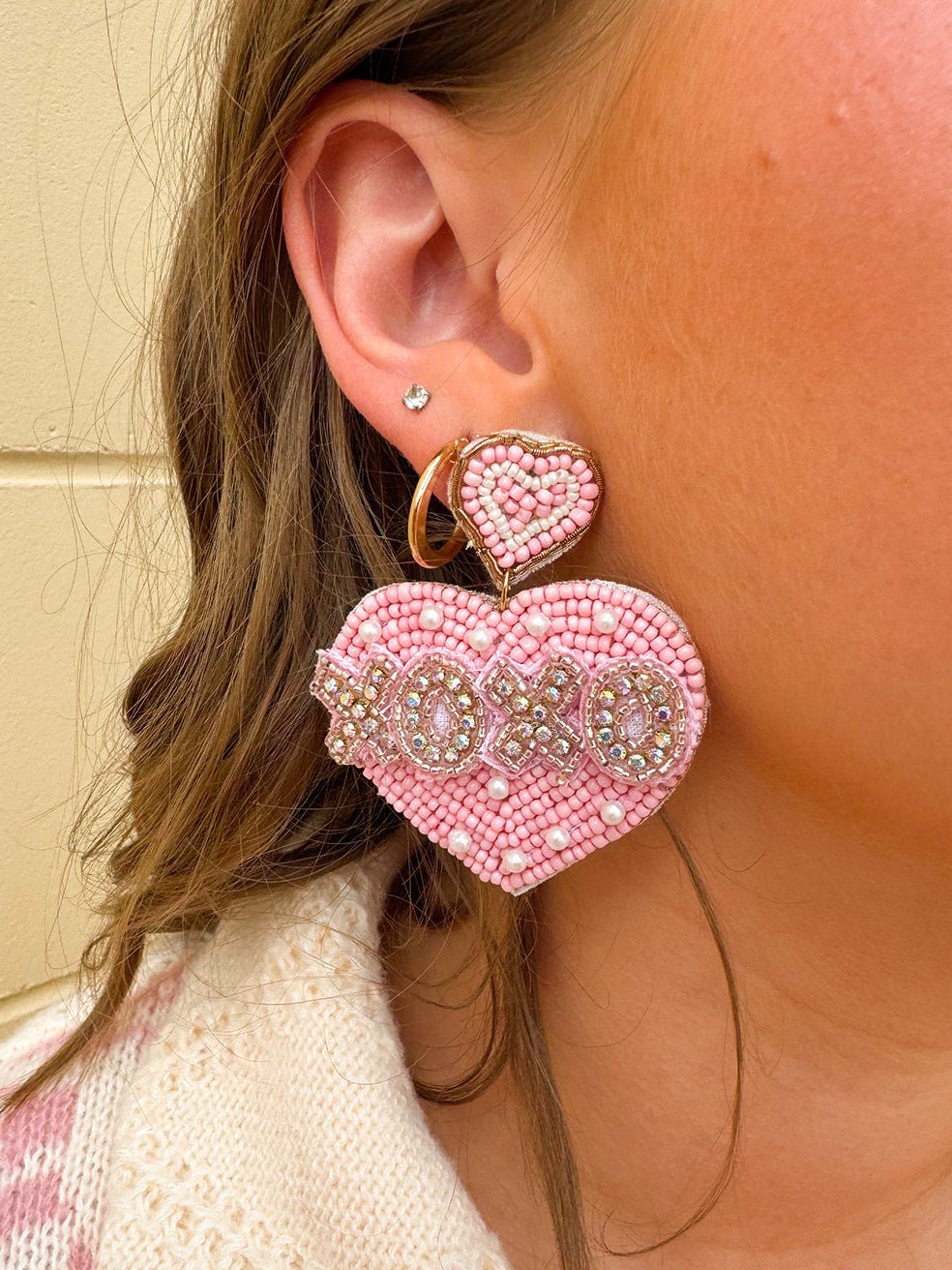 {FINAL SALE} Xoxo Heart Shaped Valentine Beaded Earrings in Pink