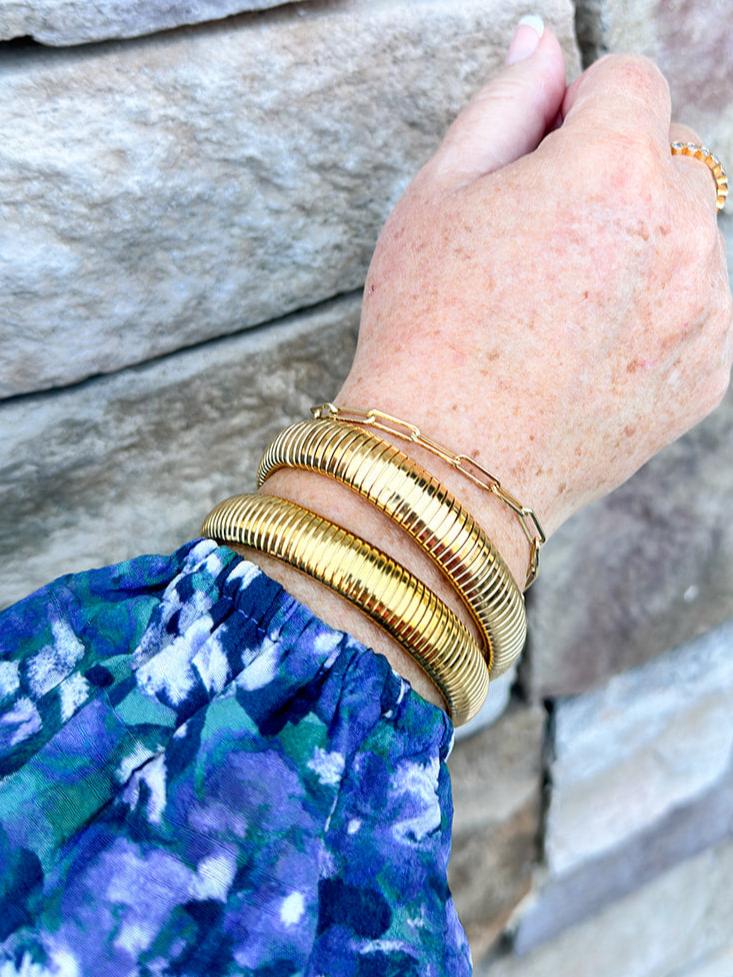 Elevate your style with our 18K Gold Plated Bangle Bracelet. Made of durable titanium steel, it boasts a flexible design, providing a comfortable fit and a chic look. The sleek gold plating adds a touch of luxury, perfect for any occasion. Stand out with one or stack several for an even more glamorous effect!