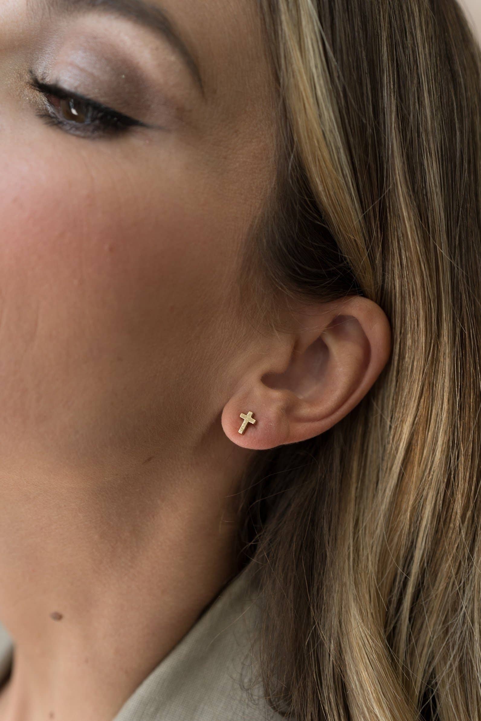 Looking for delicate earrings that carry meaning and style? The [Brenda Grands] 24K Gold Dainty Cross Studs are a miniature masterpiece, designed to bring a sense of victory and confidence to every wear. Handcrafted from brass and plated in luxurious 24K gold, these hypoallergenic, nickel-free studs are gentle on the ears while shining with understated elegance. The sketched cross design adds a unique, triumphant vibe, making these studs a perfect everyday reminder of strength and empowerment. Lightweight and dainty, they’re ideal for layering with other earrings or wearing solo for subtle sophistication. Handmade in Texas, each pair reflects the craftsmanship and empowering philosophy behind Brenda Grands Jewelry.