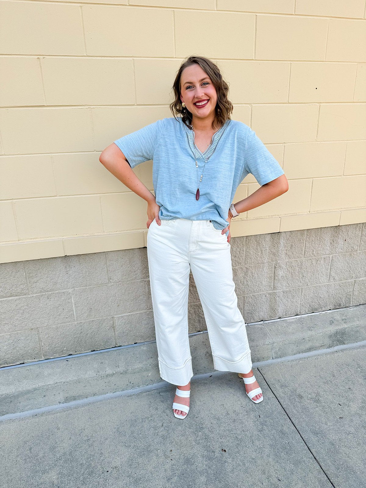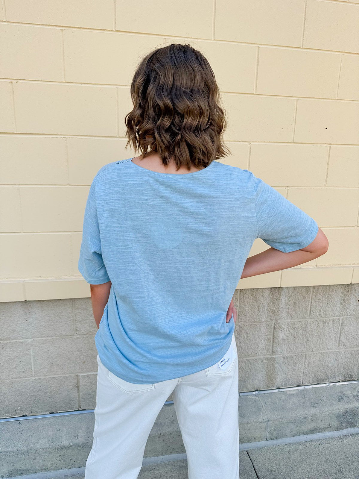 {FINAL SALE} American Dream Lace Trim V-Neckline Top in Sky Blue