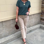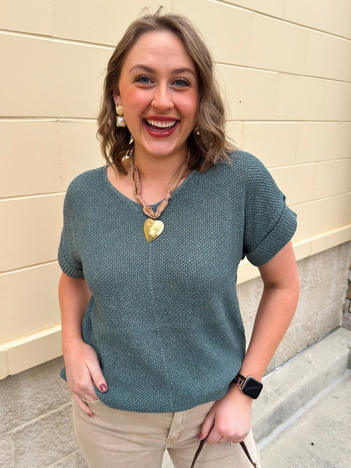 Looking for that perfect fall knit that’s lightweight, soft, and endlessly wearable? The Ash Jade Center Seam Sweater is your new go-to for effortless style and comfort. Crafted in a cozy, breathable knit, this short-sleeve sweater features a flattering center seam detail, rolled cuffs, and subtle side slits for easy movement and a relaxed fit. The gorgeous ash jade hue adds a cool, modern touch that transitions seamlessly from season to season.