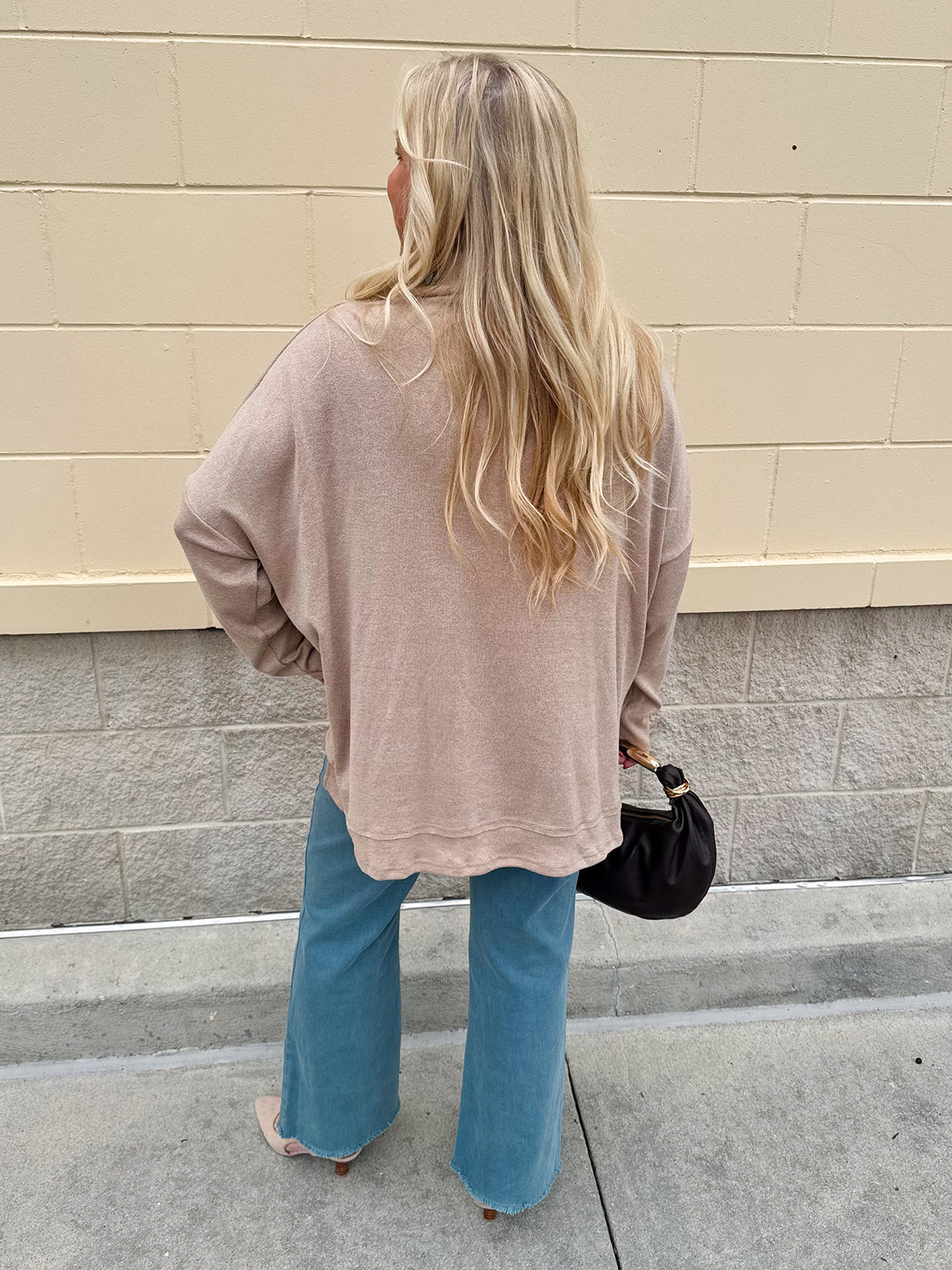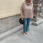 The neutral taupe tone makes it endlessly versatile—wear it solo with denim and boots for an easy everyday look, or layer it under blazers, vests, or cardigans when temperatures drop. Its relaxed-yet-polished fit makes it equally suited for weekend errands, office days, or cozy evenings at home.