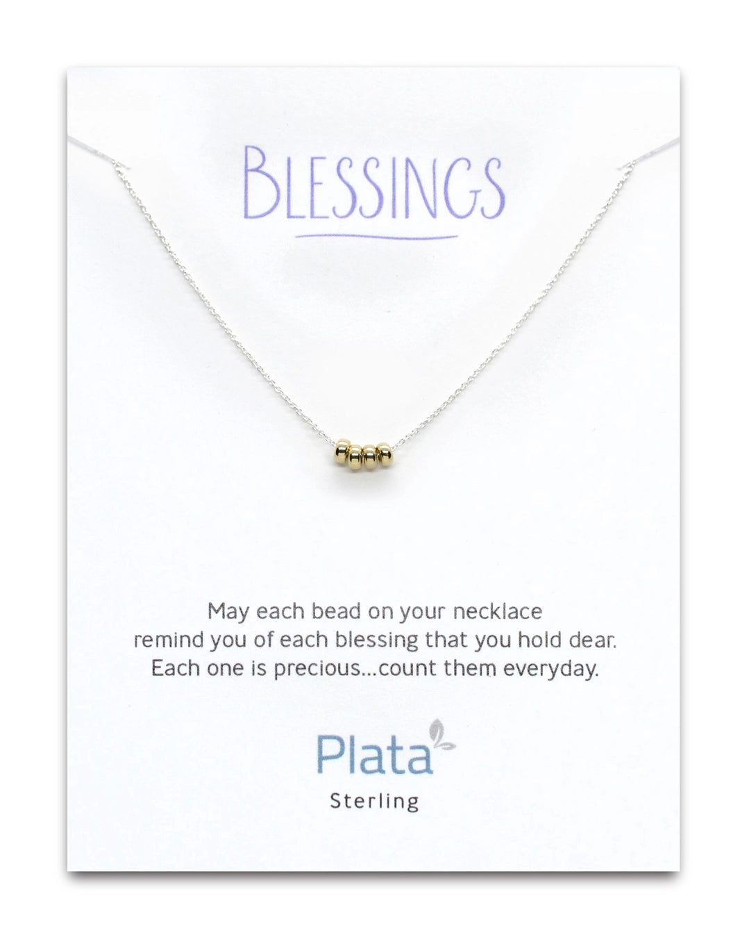 Adorn yourself with the Blessing Charm Necklace, crafted with sterling silver and golden beads. Each Tiny 1/8" Gold Filled Blessings Bead Represents a Blessing that you Hold Dear. Every bead is a reminder of the precious blessings in your life - count them daily, and add a bead for each one. Enjoy peace of mind - this luxe, exclusive necklace includes a one year warranty! Made in the United States!