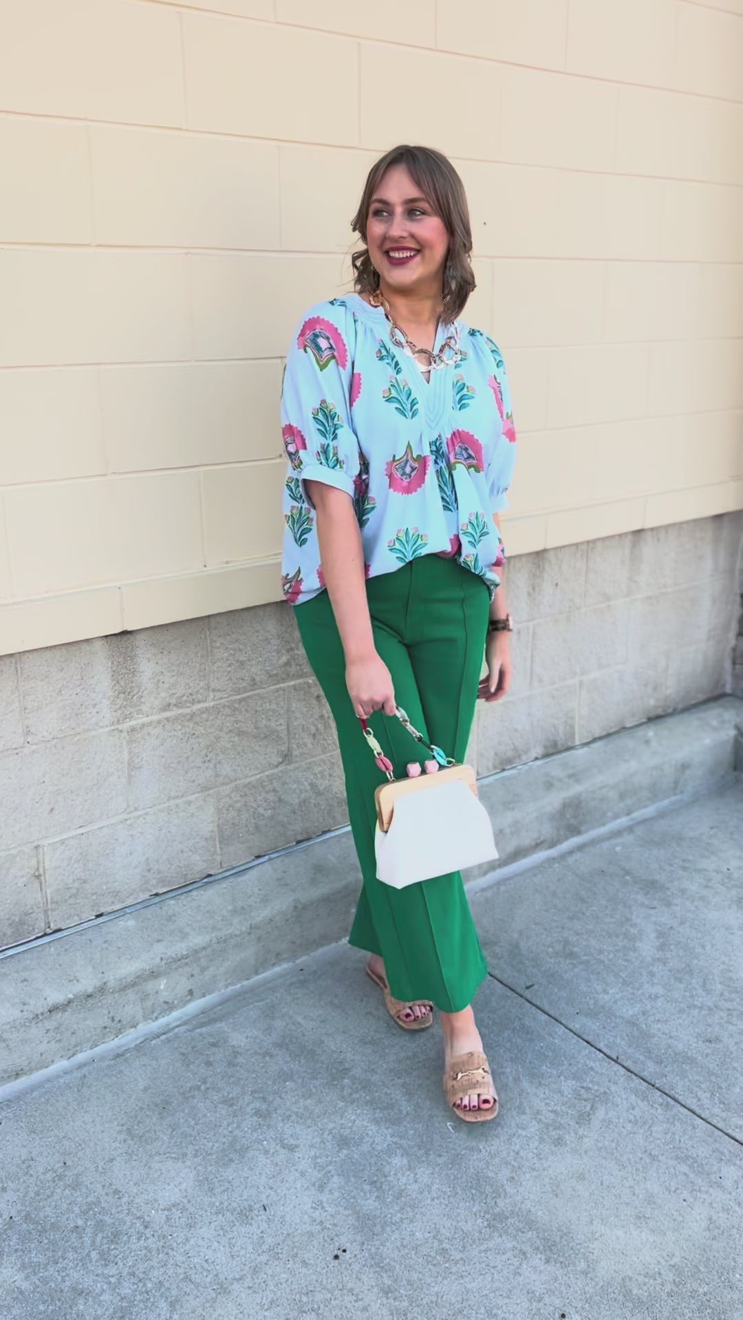 Light, airy, and effortlessly polished — the Blue Haven Breeze Blouse is that easy statement piece your closet has been waiting for. Designed on a soft light blue base, this blouse features a whimsical floral print in coral, teal, and fresh green tones that feel bright, happy, and perfectly in season.