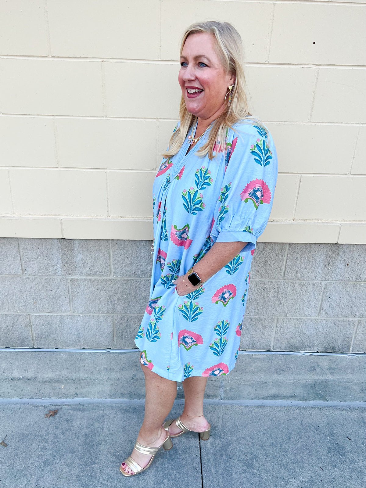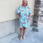 Light, effortless, and beautifully eye-catching — the Blue Haven Breeze Dress takes everything you love about the blouse and transforms it into an easy, throw-on-and-go silhouette. Designed on a soft light blue base, this dress features the same whimsical floral print in coral, teal, and fresh green tones that instantly brighten your look.