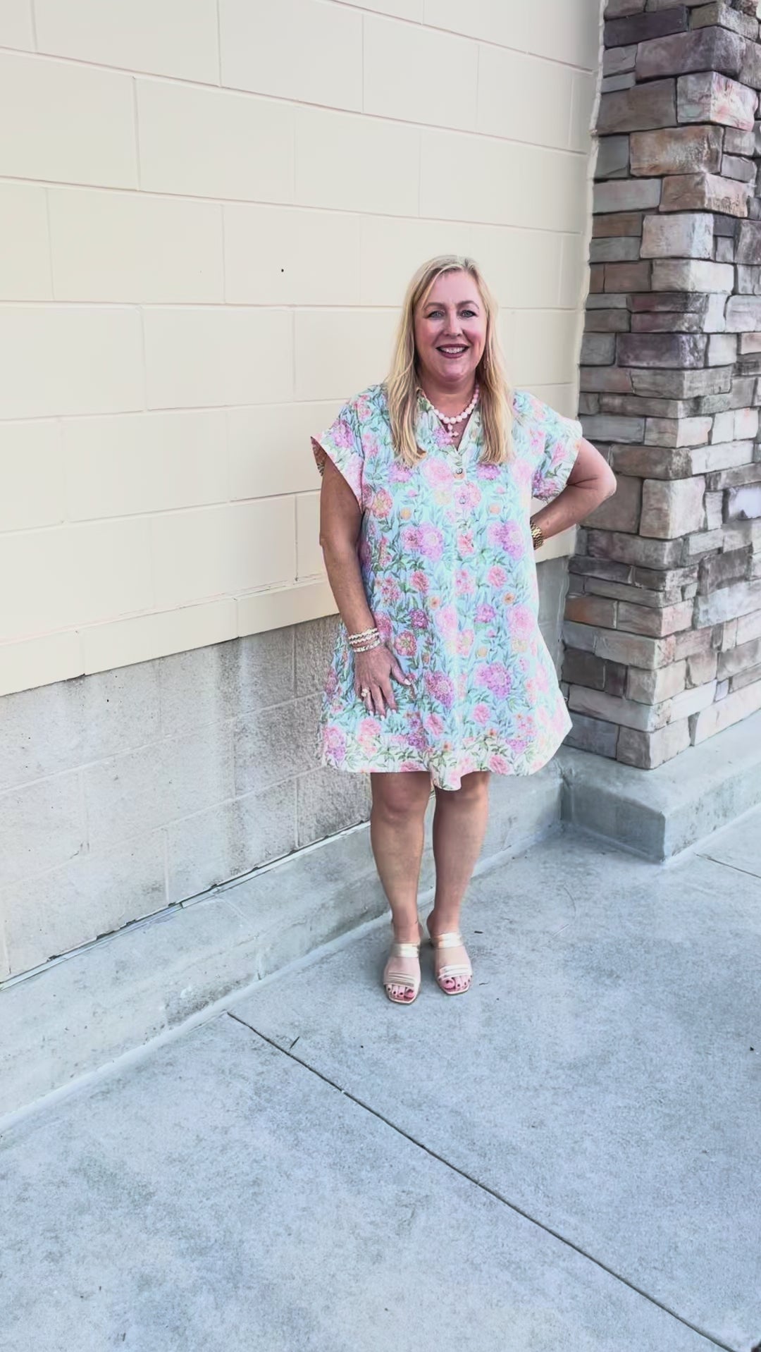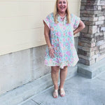 The contrast border detail adds that elevated boutique touch, giving the dress a refined frame that truly makes it stand out. A button-front closure brings subtle structure, while the easy short sleeve silhouette keeps it relaxed and wearable. Thoughtfully designed with side pockets (yes, pockets!) and a full lining, this piece offers comfort and confidence from morning to night.