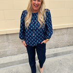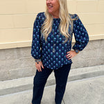 Softly sophisticated and effortlessly feminine, the Bluebell Bloom Keyhole Blouse brings timeless elegance to your everyday wardrobe. Designed in the same delicate blue floral print as our Bluebell Bloom Belted Shirt Dress, this top features a graceful jewel neckline with a subtle keyhole closure at the back for a refined finish. The long sleeves are completed with elastic cuffs, allowing you to wear them full-length for classic polish or tuck them slightly for a softly puffed, romantic look.