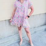 The contrast border detail frames the dress beautifully, adding that elevated boutique touch that makes it stand out. A functional button-front closure gives subtle structure, while the short sleeves keep the silhouette easy and wearable. And of course — it has side pockets for that practical detail we all love. Fully lined and non-sheer, this dress offers comfort and confidence from morning plans to evening events.
