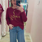 Styling Tip: Keep it laid-back with leggings and sneakers for a cozy tailgate look, or style with black denim and gold hoops for a chic gameday outfit.