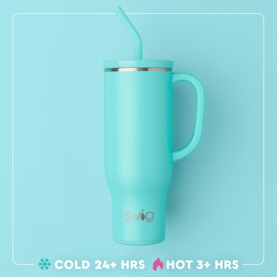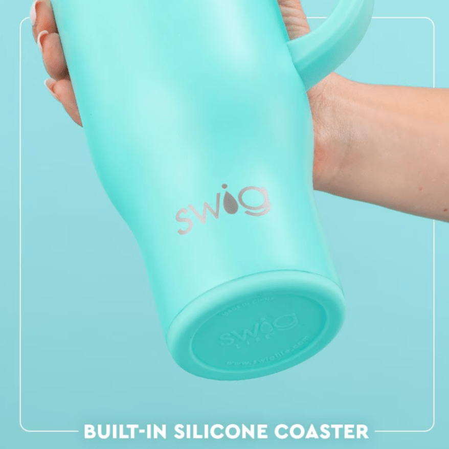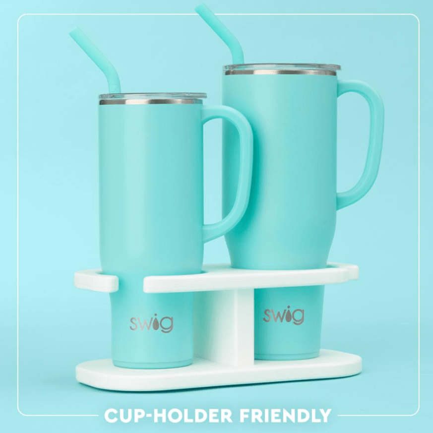 Hydrating has never been easier with our 30oz Insulated Mega Mug! A cup holder-friendly frame, a comfort-grip handle, and a plastic straw with a silicone flexi-tip all come together to create your new favorite Swig.