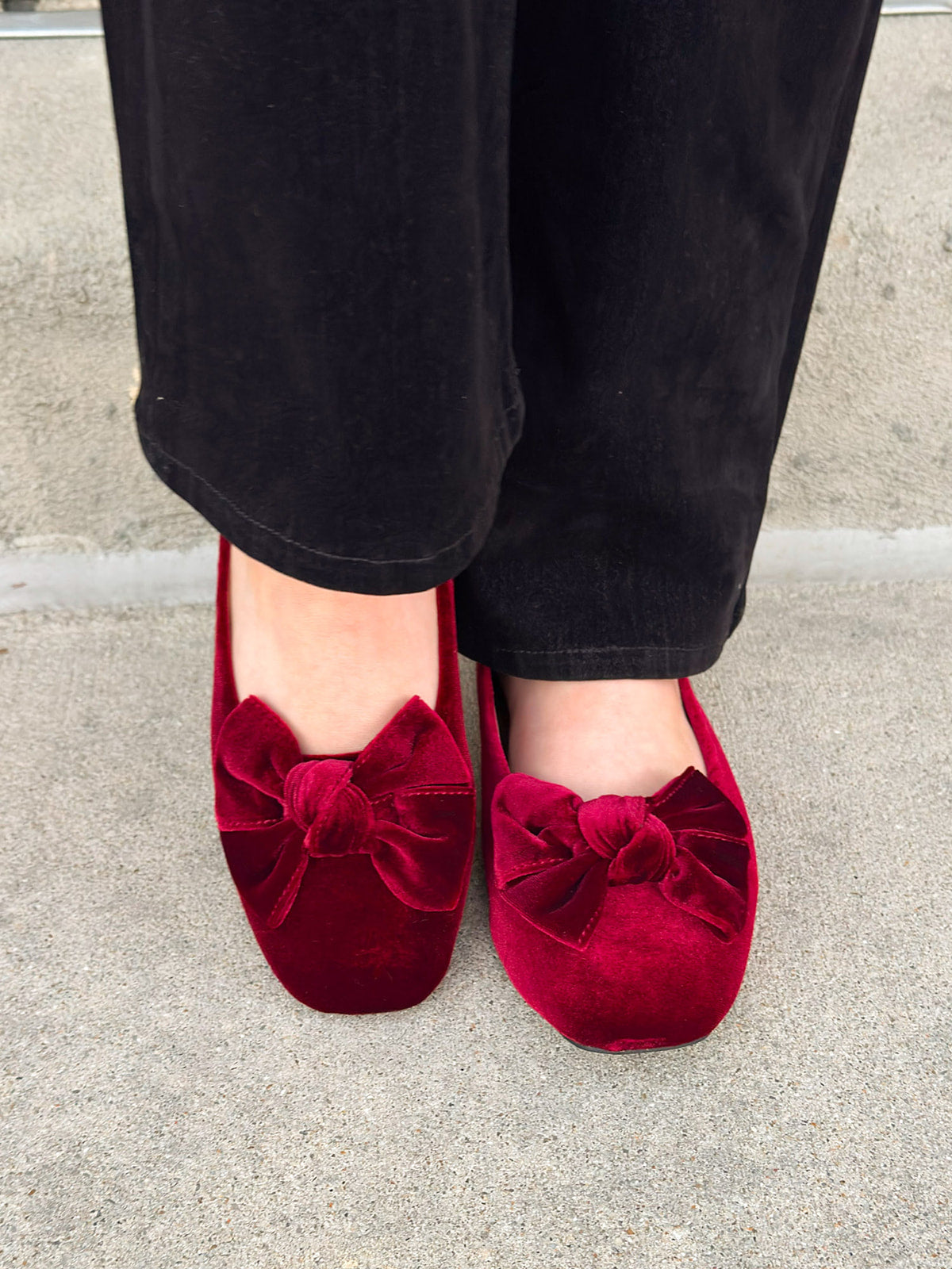Step into timeless holiday charm with the Burgundy Belle Velvet Flats. Crafted in rich burgundy velvet and topped with an oversized bow, these flats are the perfect balance of cozy comfort and dressed-up chic. Whether you’re heading to a festive party or a casual brunch, they deliver effortless holiday-ready style without the heels.