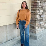The round neckline and drop shoulder cut create a relaxed, oversized fit that drapes beautifully, while the reverse top stitch adds subtle edge and texture. A rounded hemline softens the silhouette, making it easy to style tucked, half-tucked, or loose. Lightweight yet cozy, it’s the perfect transitional piece—comfortable for casual lounging but polished enough for coffee dates or weekend outings.