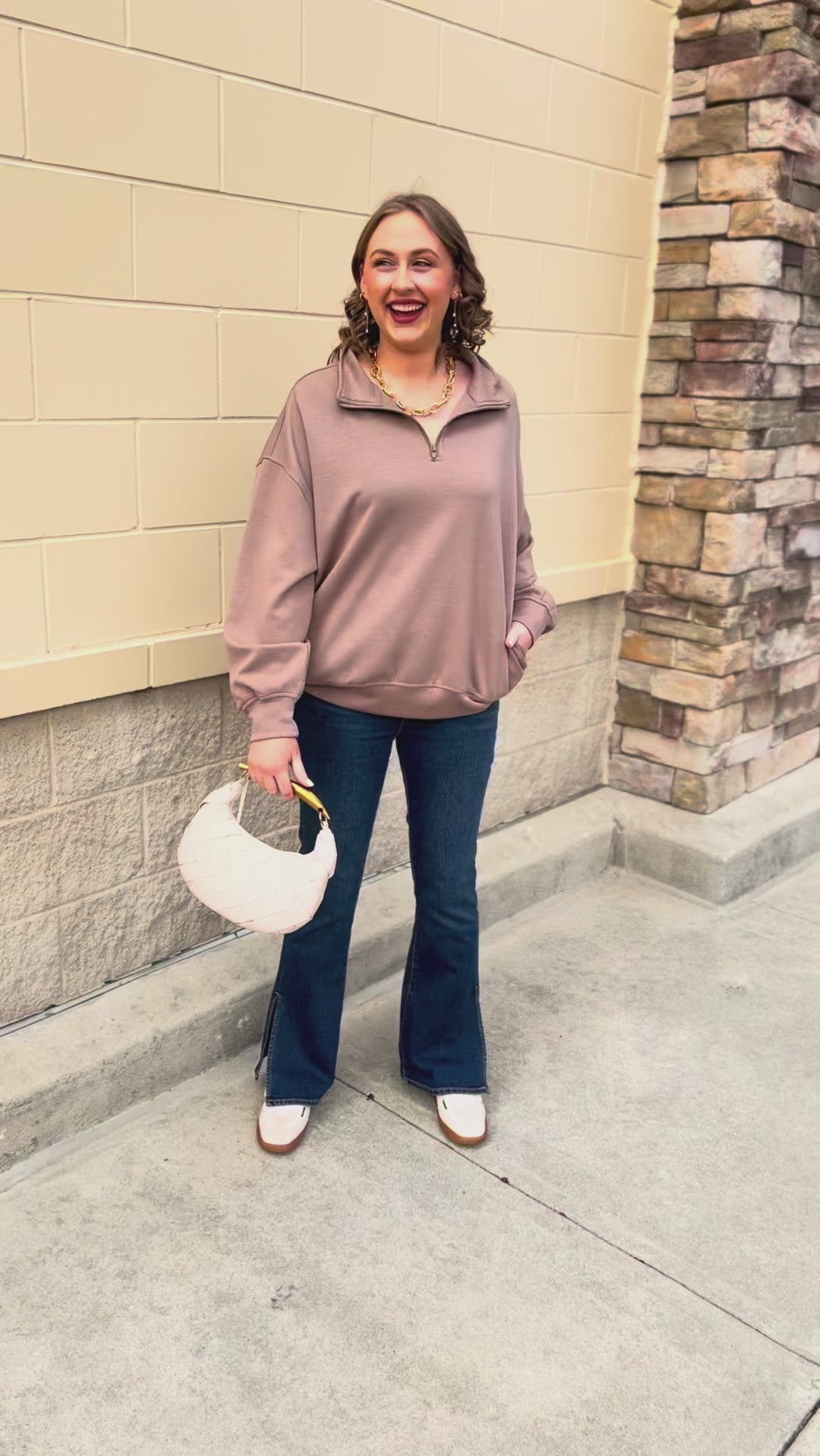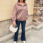Soft, warm, and effortlessly chic—the Cocoa Sands Half-Zip brings a soothing neutral tone to your casual wardrobe with a cozy, polished edge. Crafted in a light cocoa hue reminiscent of sun-kissed sands, this pullover features a relaxed fit and a half-zip neckline with an elevated collar for just the right amount of structure. Whether layered over your favorite tee or styled solo on cooler days, it’s the perfect blend of comfort and boutique style.