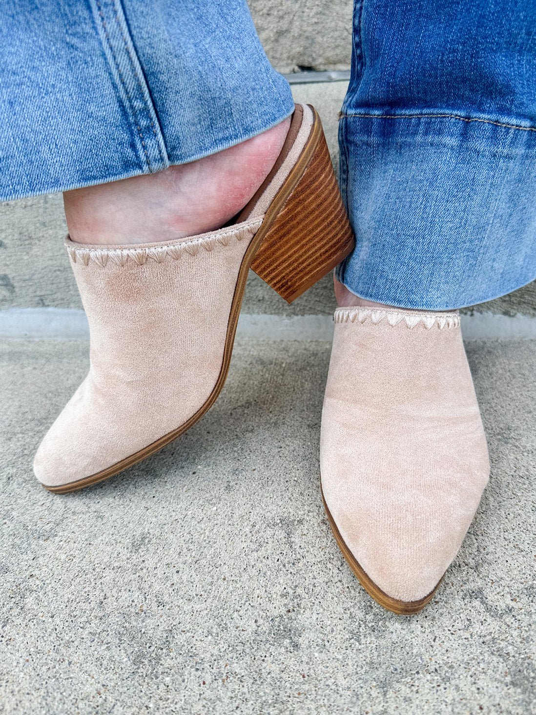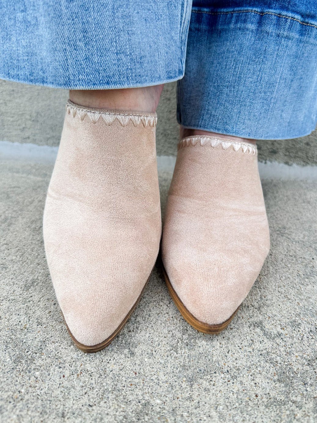 Chic, neutral, and endlessly wearable—the [Corkys] Sandstone Suede Mule is your effortlessly elevated everyday heel. Crafted from soft tan faux suede with a sleek pointed toe, this easygoing mule adds warmth and polish to any outfit. The slip-on style and walkable block heel make it a go-to for days that blend comfort and style. From office hours to dinner dates, this pair brings a soft sophistication to your fall and year-round wardrobe.