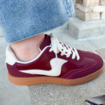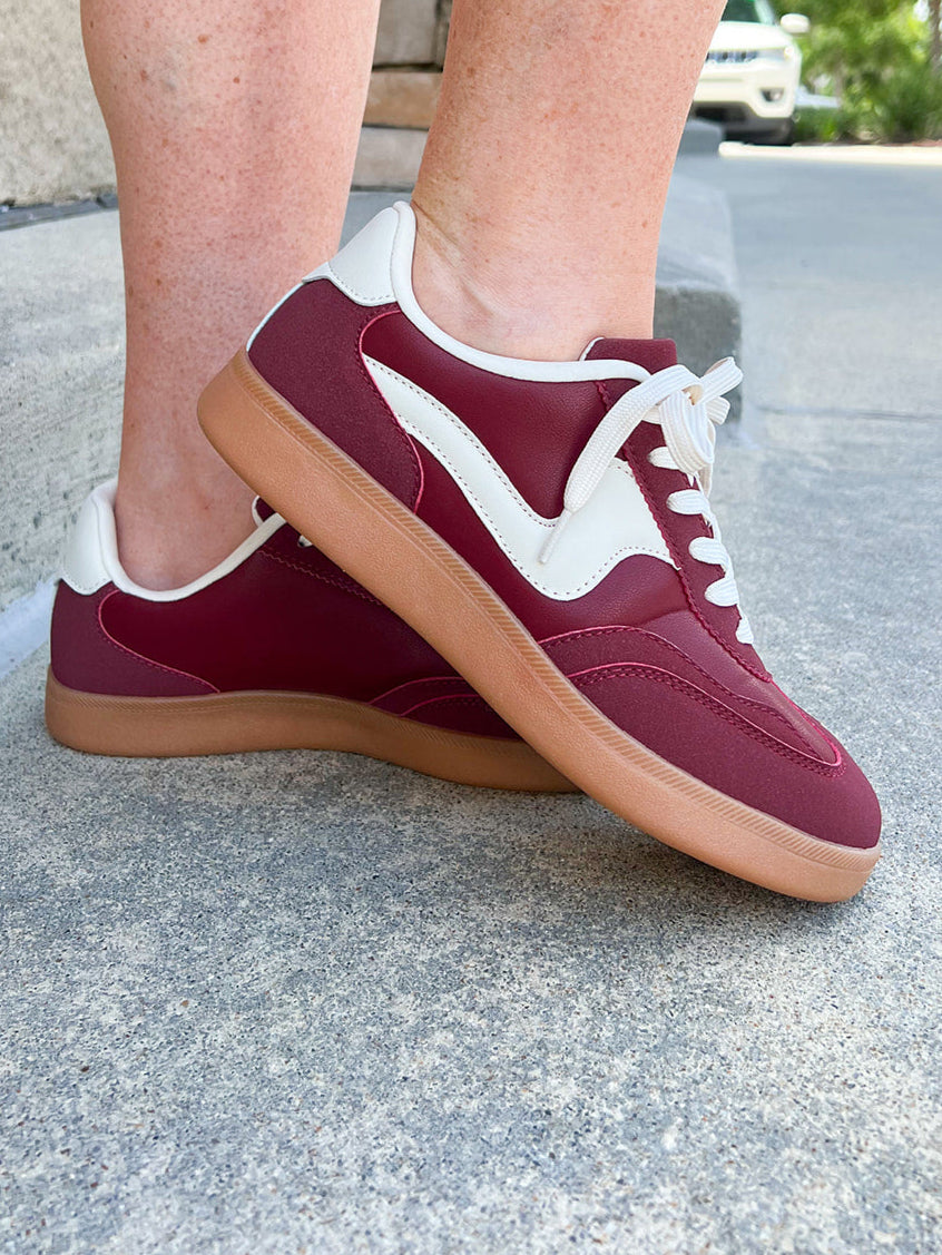 Make a statement with the Crimson Coast Sneakers, where deep wine hues meet crisp white accents for a look that’s both sophisticated and effortlessly cool. The tan rubber soles add subtle warmth and reliable traction, making these sneakers the perfect complement to your everyday outfits. Whether you’re out for a casual day or weekend adventure, they bring a refined pop of color with every step.