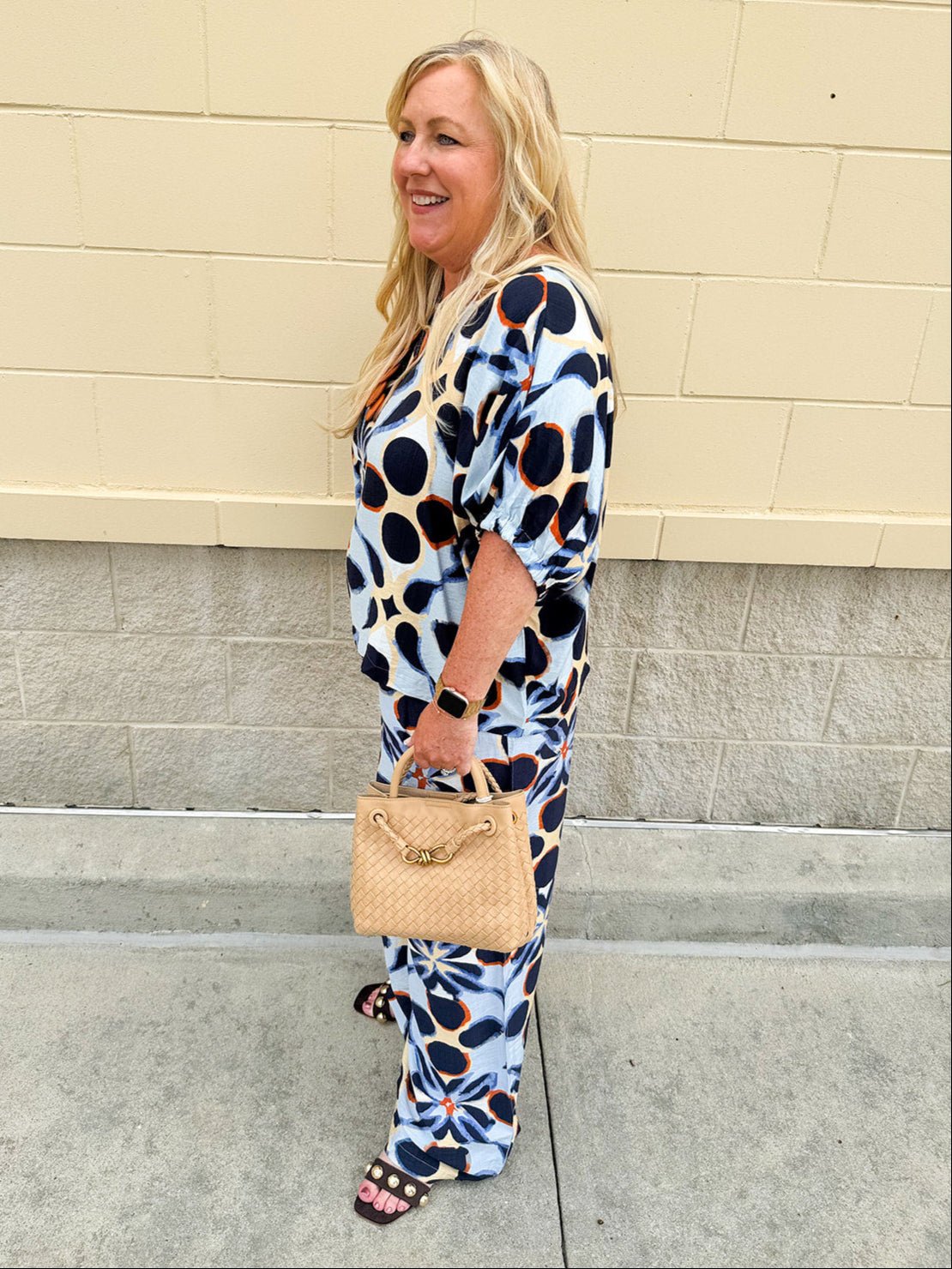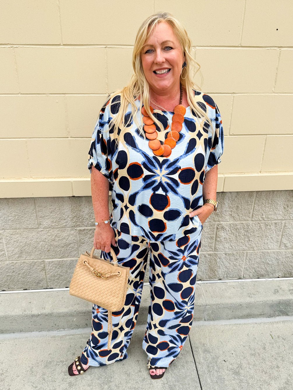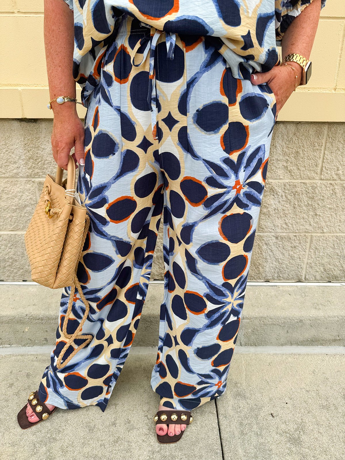 Bright, breezy, and effortlessly bold—the Daybreak Stroll Smocked Pants are here to make your outfit feel like a vacation. Designed with a high-rise smocked waistband and adjustable tie closure, these printed pants are equal parts flattering and comfortable. The lightweight woven fabric flows with ease, and the straight-leg silhouette gives them a relaxed yet polished shape. Featuring an eye-catching mix of indigo, orange, and butter yellow on a soft light blue background, they’re just the pop of color your wardrobe’s been waiting for. And yes—they’ve got pockets.