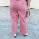 The cropped wide-leg cut gives these jeans a playful nod to vintage 90s styling, while the terracotta shade adds a unique pop of color that pairs beautifully with neutrals, prints, and cozy fall knits. Whether you’re running errands, headed to brunch, or dressing them up for a holiday gathering, these jeans are ready to move with you through every season.