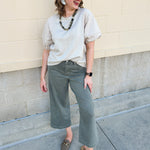 Looking for denim that feels fresh, flattering, and a little unexpected? Meet the Dear John Vetiveer Audrey Wide Leg Jeans—your new favorite pair for effortless style this season. Designed in a soft sage green hue, these jeans bring a subtle pop of color while staying timelessly chic. The high-rise fit defines your waist beautifully, while the wide leg and raw cut hem add modern movement and an easy, relaxed feel. Crafted with Dear John’s signature soft denim blend, they deliver comfort and structure in perfect balance. From casual coffee dates to dressed-up dinners, Audrey gives you the confidence to look as good as you feel—because great jeans should always make you stand a little taller.