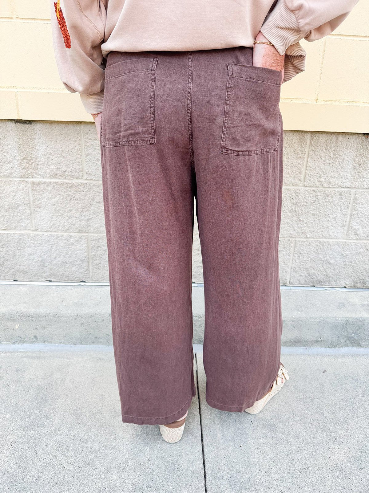 [Dear John] Cappuccino Audrey Wide Leg Crop Linen Pants