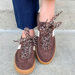 Step into fall in style with the Dixie Chocolate Suede Sneakers — a chic, elevated take on casual comfort. Crafted in rich chocolate suede, these low-top sneakers feature cream side detailing that adds a clean, modern contrast. The standout touch? Brown leopard print laces that bring a playful pop of pattern to your step. Finished with durable rubber soles, these sneakers combine everyday wearability with trend-forward design.