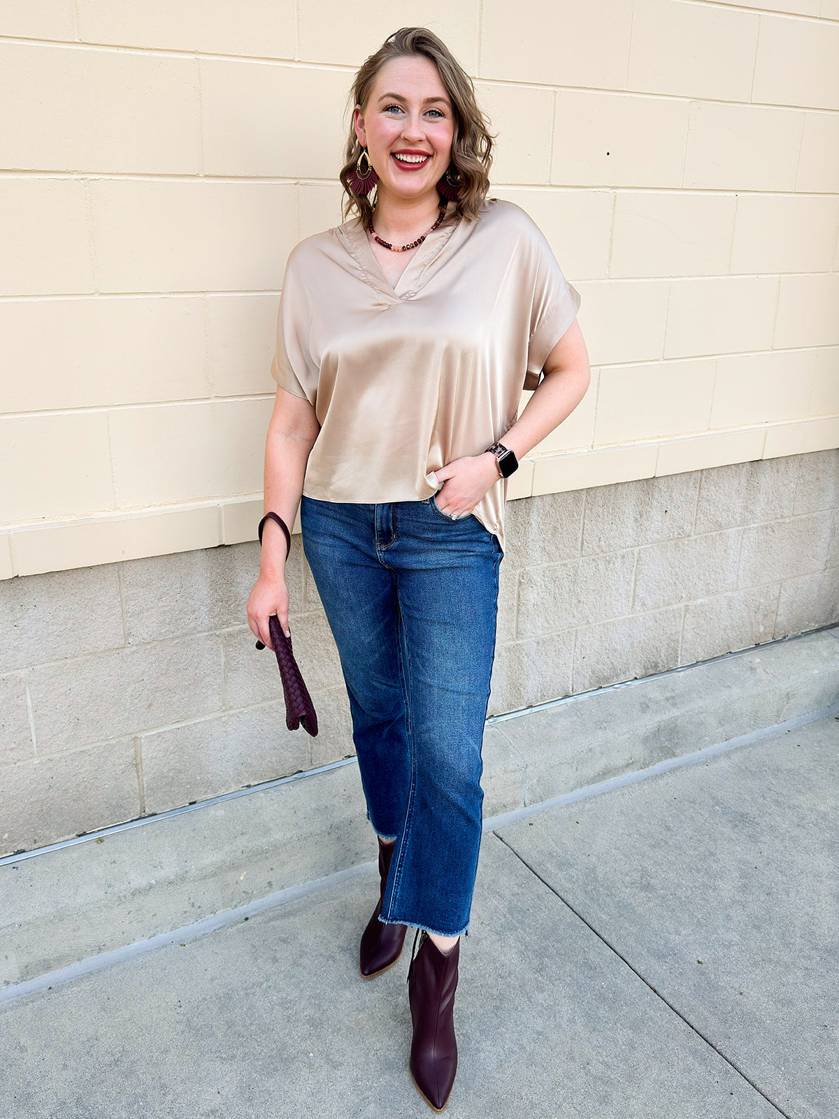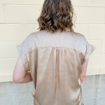 Refined meets relaxed in the Driftwood Silk Touch Blouse—your new go-to for everyday polish with zero effort. Designed in a warm gold hue, this top features a silky finish that catches the light beautifully. The wide short sleeves with cuff detail and split V-neckline keep the silhouette modern and wearable, while subtle gathering at the back yoke adds just the right amount of movement and drape. It's the kind of piece that works just as well tucked into trousers as it does loose over denim.