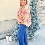Introducing the Weekend Living Floral Gauze Top, designed with long puff sleeves and pintuck detailing for a stylish and comfortable fit. The floral print adds a touch of elegance, while the adjustable tie closure on the back allows for a personalized look. Perfect for any occasion!!