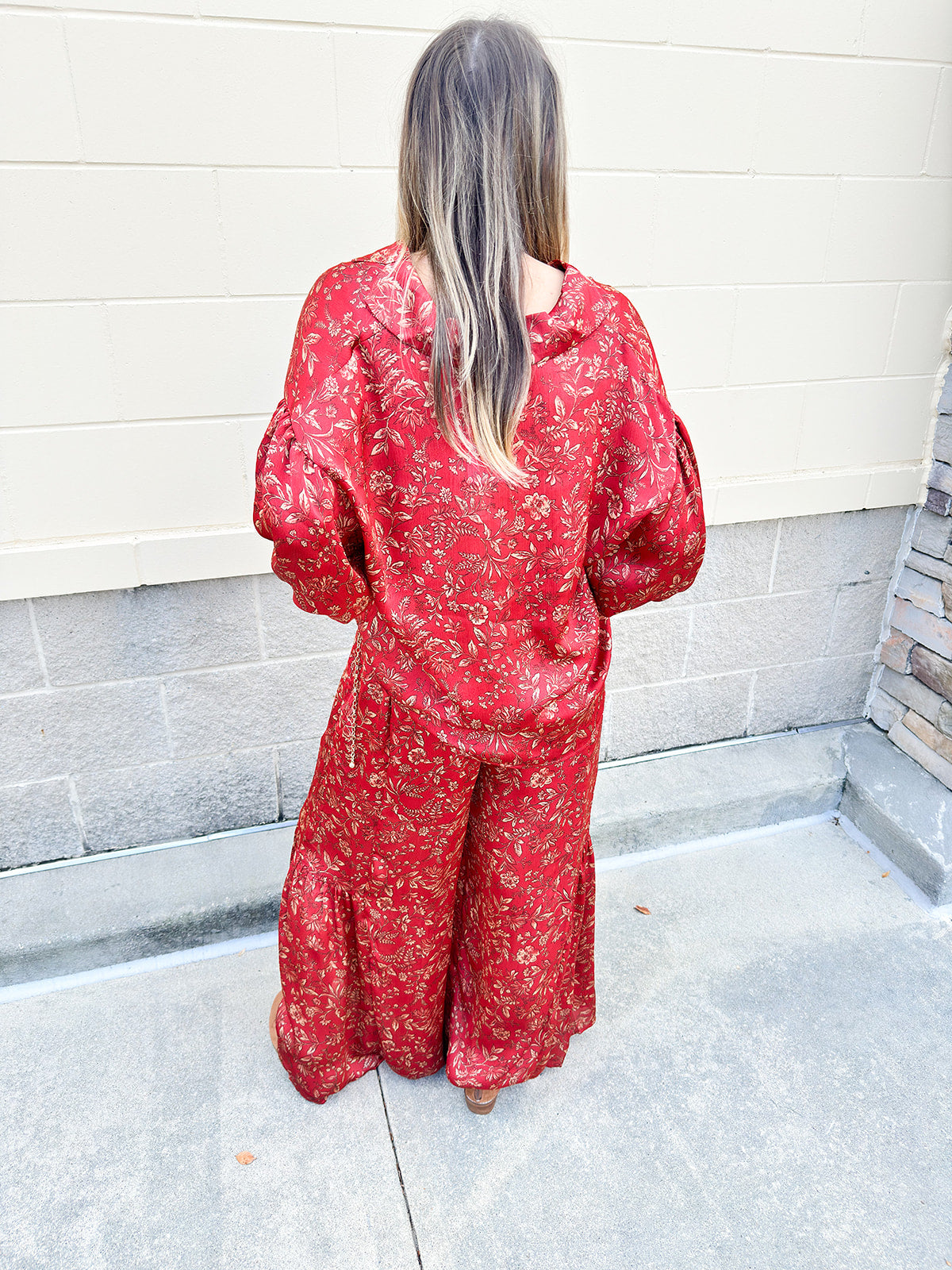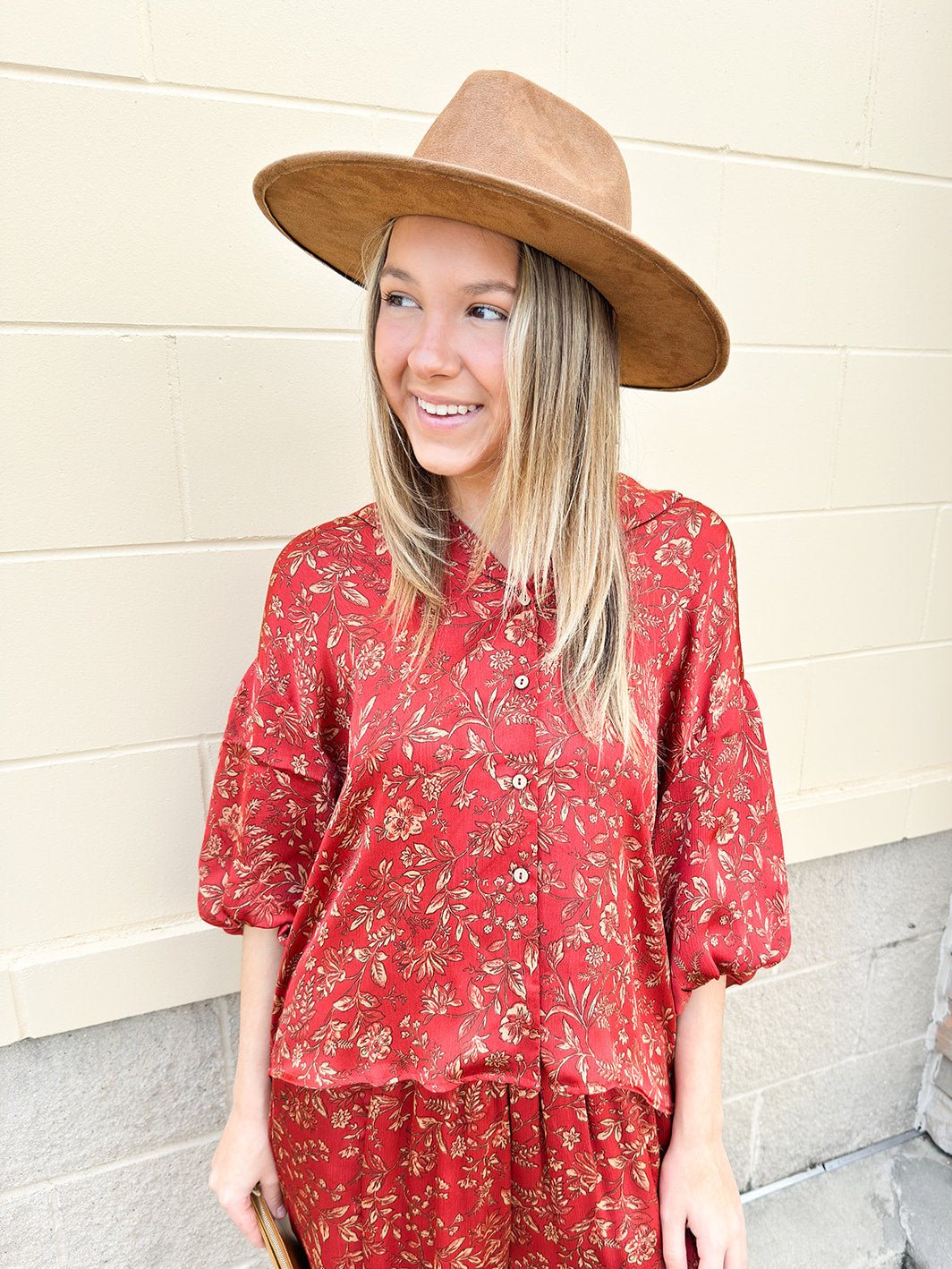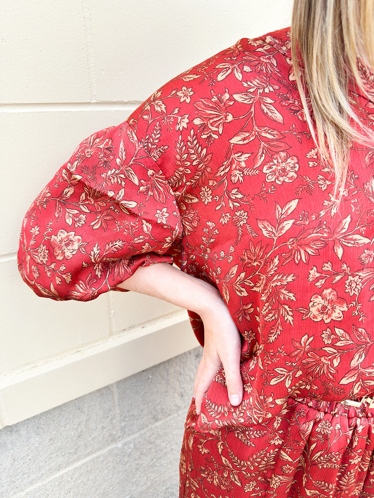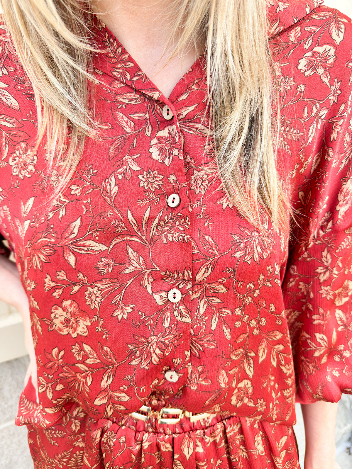 Embrace the beauty of autumn with our Falling For Autumn Satin Floral Top. Made from printed satin crinkled woven fabric, this shirt features bubble half sleeves, slightly dropped shoulders, and a notched neckline with button down closure. The floral print pattern adds a touch of elegance to its relaxed and loose fit, making it the perfect addition to your wardrobe!