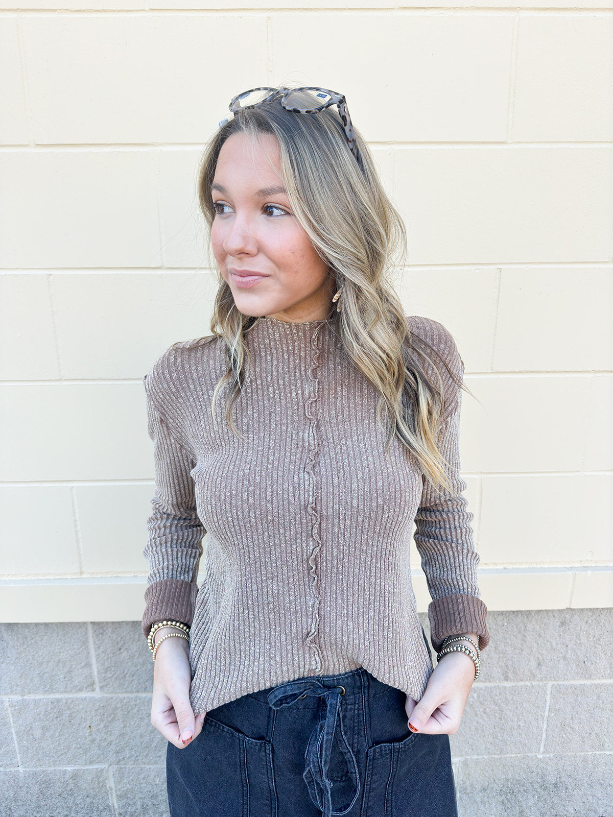 Get ready to cozy up by the bonfire in our Rib Knit Washed Fitted Top. With its long sleeves, mock neckline, and lettuce edges, this top offers a unique twist on a classic rib knit style. The mineral washed fabric adds a touch of edginess, while the defined middle seam and dropped shoulders provide a stylish, yet comfortable fit. Don't miss out on this perfect fall staple!