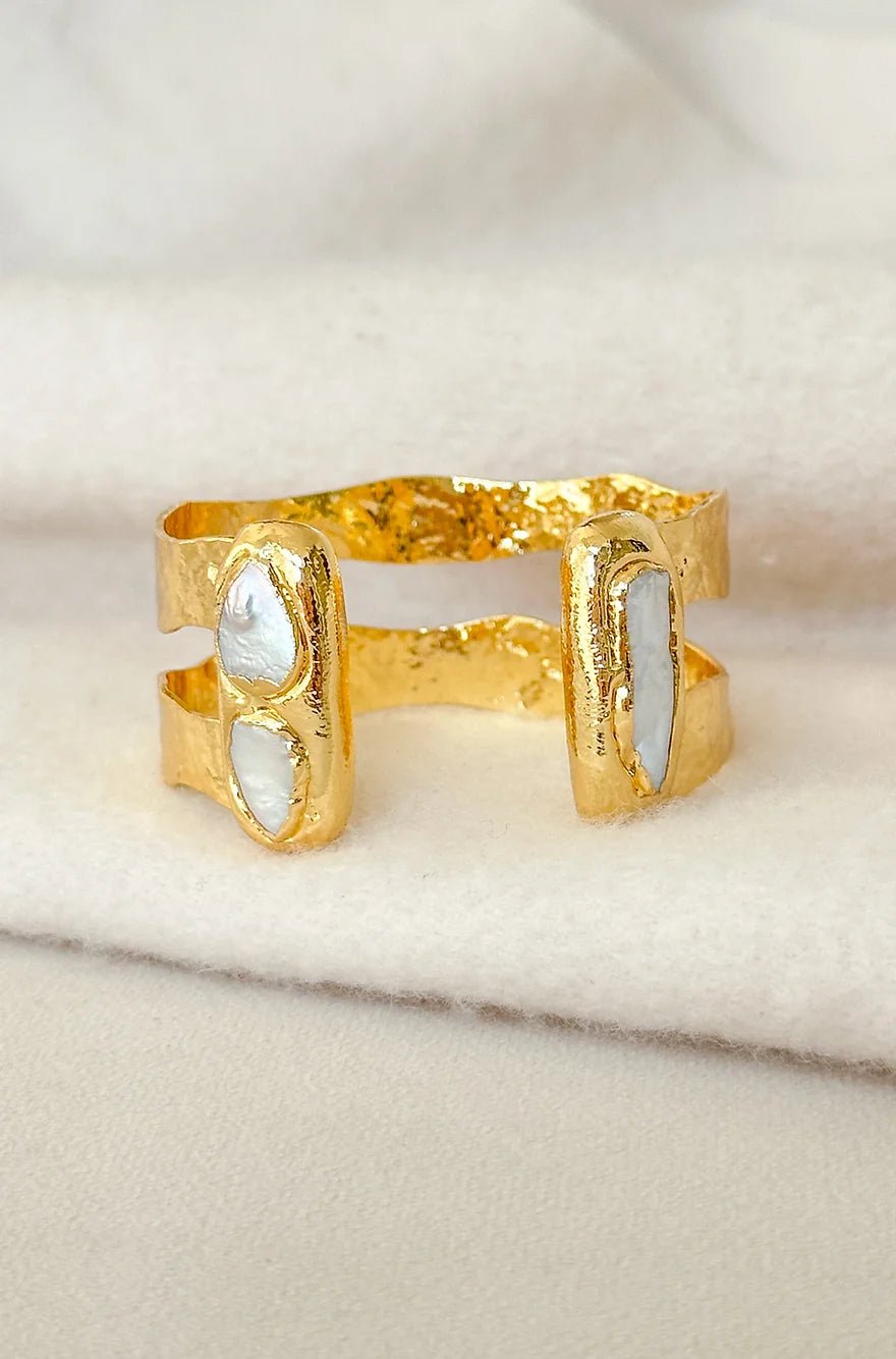 Add a touch of elegance and sophistication to your wardrobe with the Easton Elle Double Pearl Cuff. Crafted with high-quality metal and featuring our popular double cuff design, this statement piece is sure to elevate any outfit. The double pearl accents add a timeless and luxurious touch, making it a must-have addition to your jewelry collection. Order yours today and enjoy its durability and style for years to come!