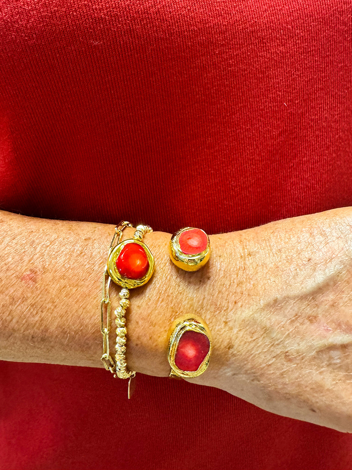 Styling Tip: Layer the Red Coral Beam Stretch Bracelet with the Misty Bracelet for a chic red-and-gold duo, or mix with simple gold bangles for a luxe, stacked effect.