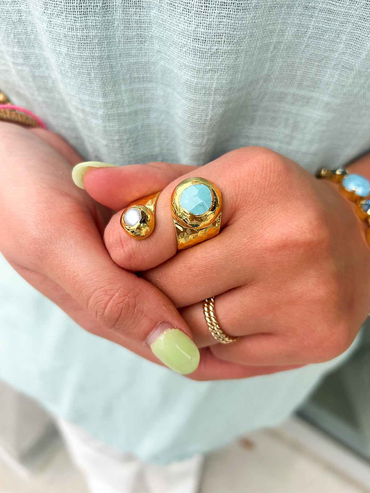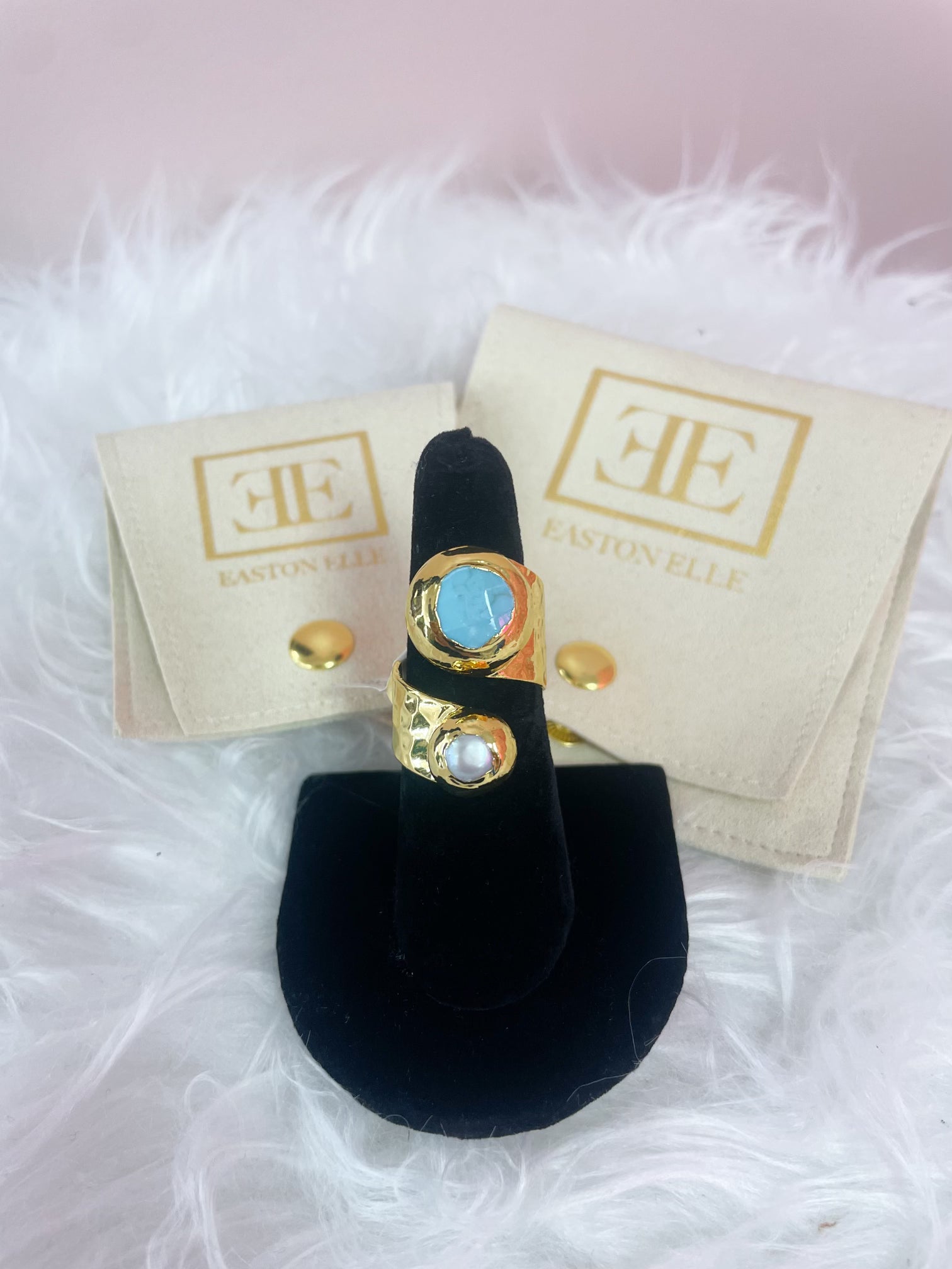 Elevate your style with the Easton Elle Turquoise Curl Ring! Featuring a stunning turquoise curl pearl, this ring adds a touch of elegance and uniqueness to any outfit. Make a statement and turn heads with this beautiful accessory.