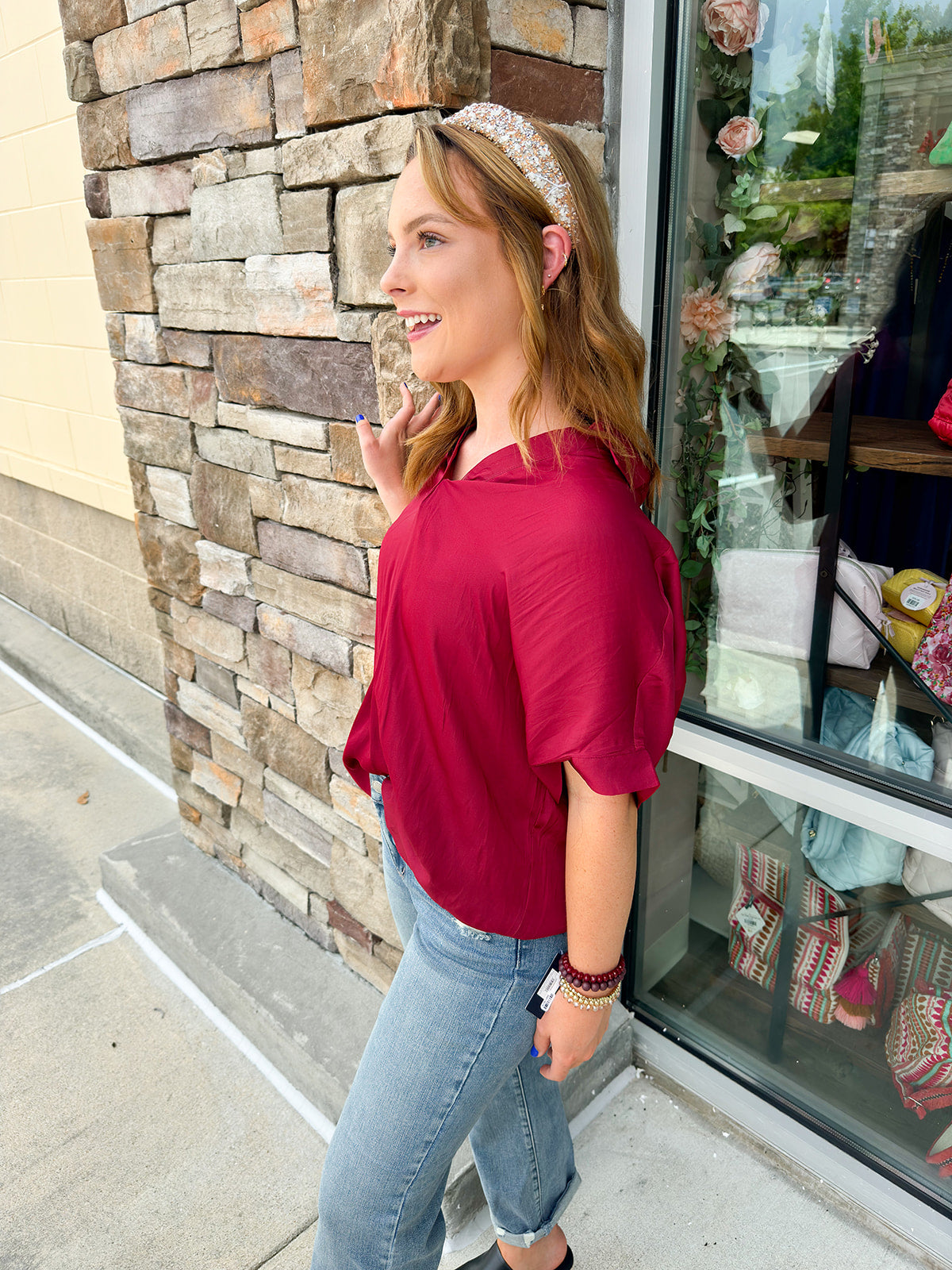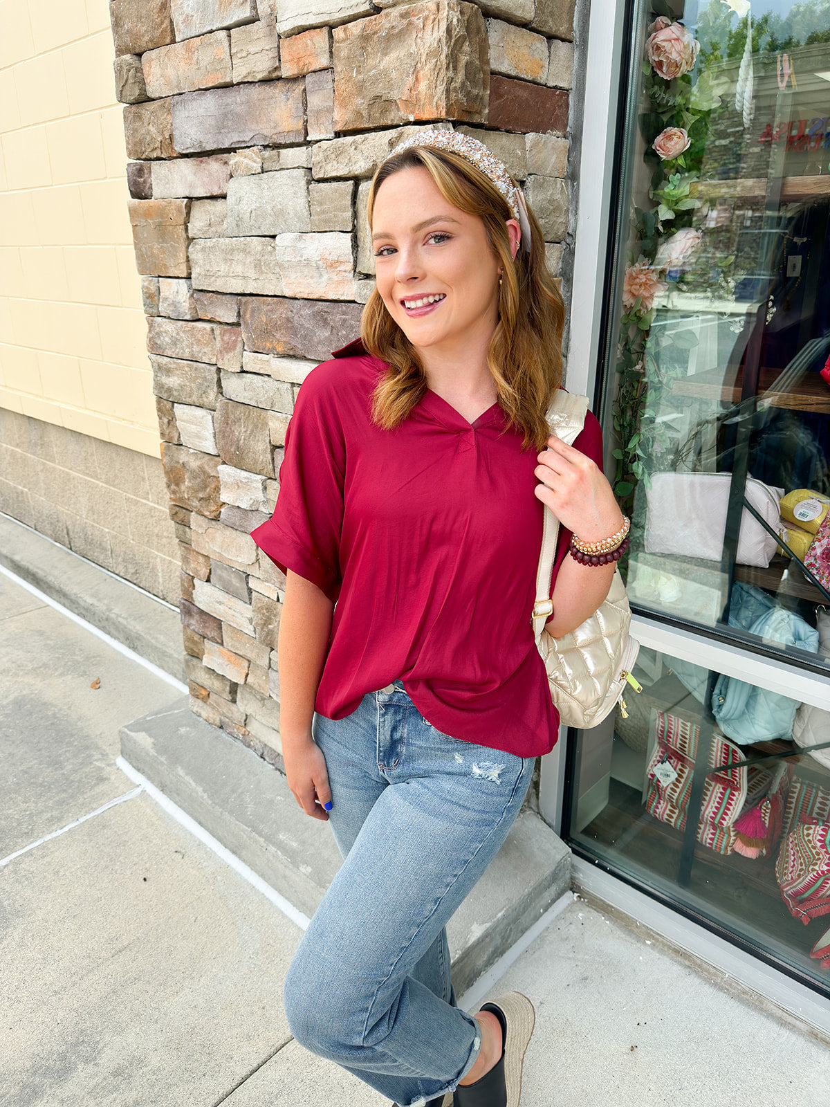 Experience effortless style and comfort with our No Competition Short Sleeve Blouse. Designed with a collared v-neckline and made from a light weight, airy fabric, this top is perfect for any occasion. Say goodbye to competition and hello to effortless fashion!