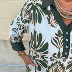 Olive and cream patterned fabric
