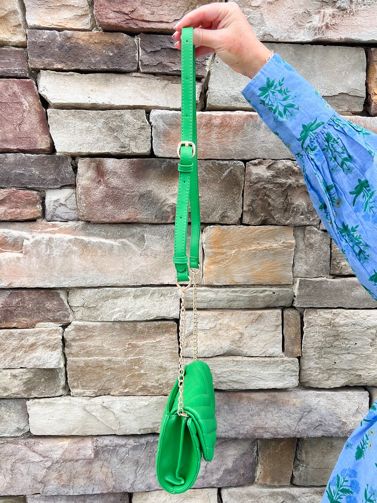 Need a pop of color that instantly pulls your whole outfit together? The Evergreen Luxe Quilted Crossbody does exactly that. Designed in a bold kelly green that feels fresh, confident, and right on trend, this bag brings polish to even the simplest looks. Crafted from premium vegan leather, it features a chic quilted exterior paired with shiny gold hardware for that elevated, designer-inspired feel—without the fuss. The secure clip closure keeps your essentials safe while you’re on the go, and the thoughtfully designed interior offers two separate compartments plus a zip pocket to keep everything organized. Compact yet functional, this is the kind of crossbody you’ll grab for everyday errands, nights out, and everything in between.