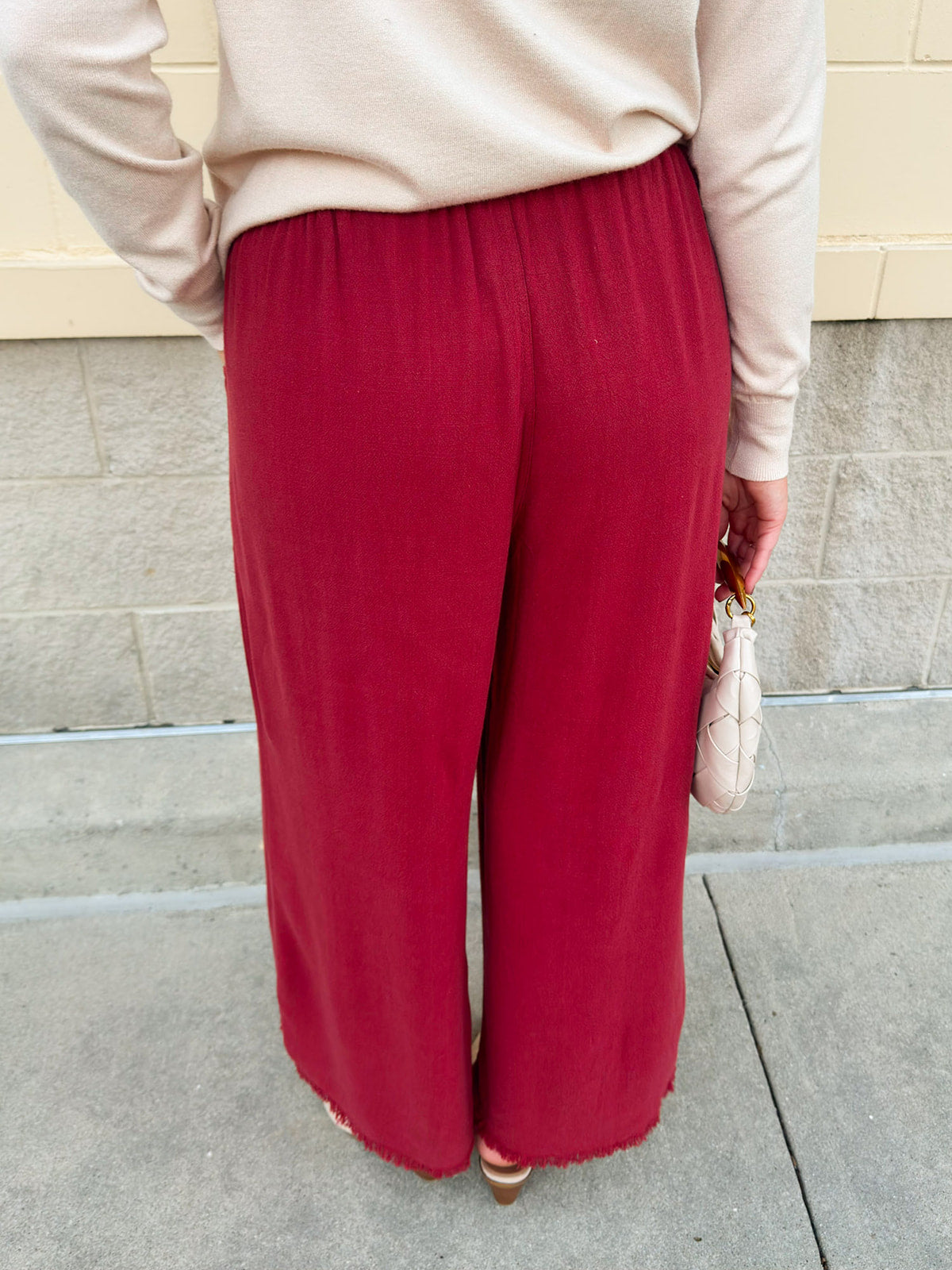 Searching for that perfect balance of comfort and chic? The Fresh Breeze Frayed Wide Leg Linen Pants in Rust bring effortless polish to your fall wardrobe. Crafted from a soft, breathable linen blend, these pants feature a relaxed wide-leg silhouette and cropped length for that easy, free-flowing feel you’ll love. The warm rust hue adds a cozy autumn touch that pairs beautifully with everything from crisp whites to creamy neutrals. Frayed hems lend a casual edge, while the adjustable drawstring waistband keeps the fit perfectly customized and comfortable.