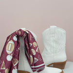 This scarf brings a powerful touch of Seminole tradition into your wardrobe while keeping things polished and feminine. Designed for fans and fashion enthusiasts alike, the FSU Spear It Scarf combines quality craftsmanship with a versatile look you’ll reach for again and again. Its soft silk fabric feels incredible against the skin, while the classic garnet and gold accents celebrate the Seminole spirit in a sophisticated way. Whether you’re cheering from the stands or heading to brunch before the big game, this scarf is the must-have accessory to complete your outfit. Finish off your look by knotting it on your bag or wrapping it around your neck for a refined pop of game-day color.