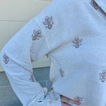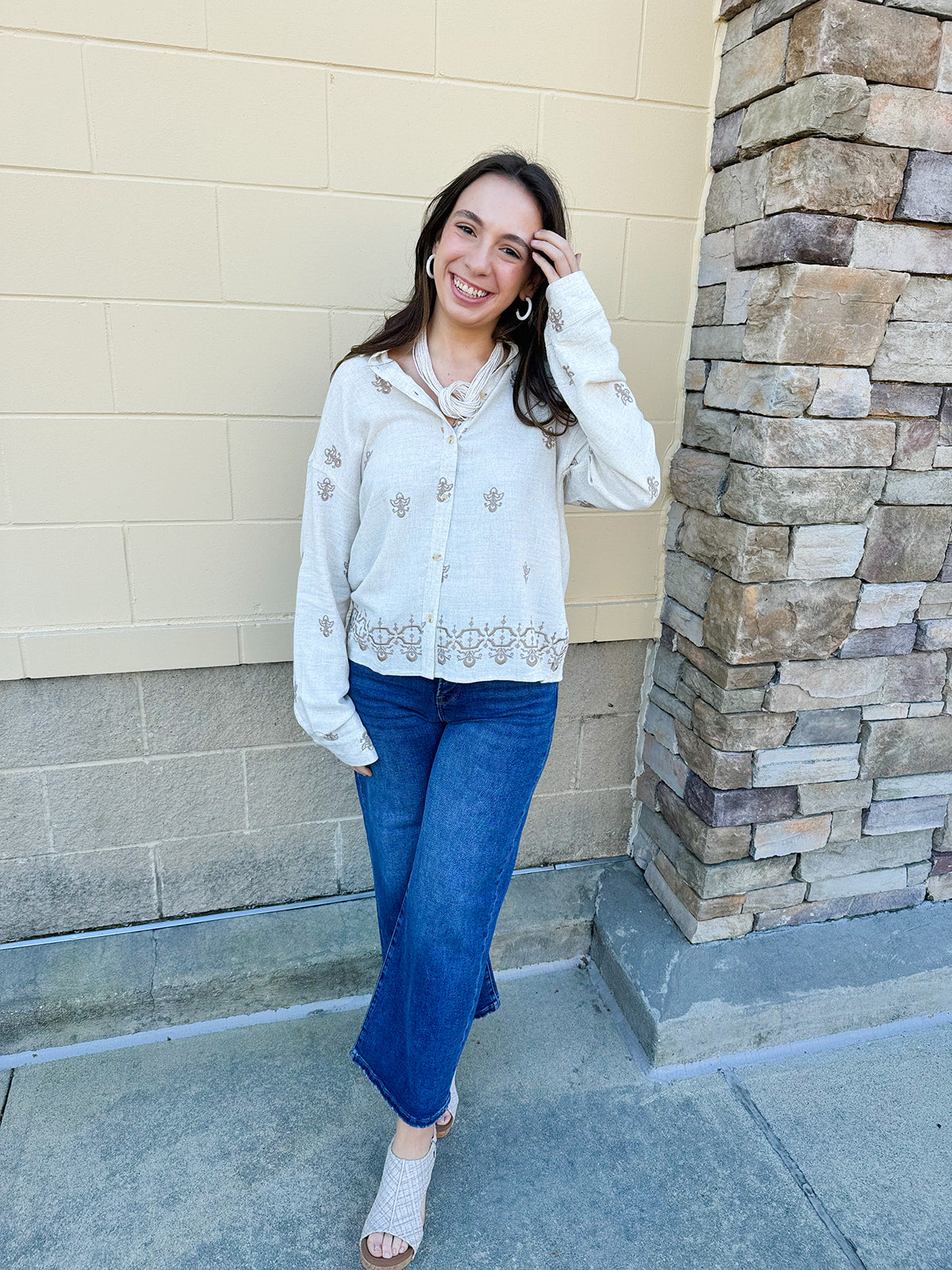 Elevate your wardrobe with our Full Of Worth Linen Button Down. Made from a luxurious linen blend, this shirt is perfect for any occasion. The exquisite embroidered details add a touch of sophistication and elegance. You'll feel confident and stylish in this versatile and high-quality shirt.