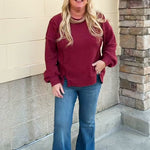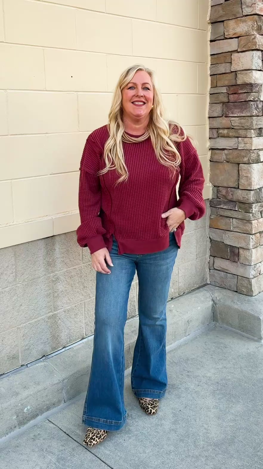 Need a cozy staple that still feels polished? The Garnet Weekend Waffle Top is the ultimate blend of comfort and style. Crafted in a soft waffle knit with a rich garnet hue, this oversized top is perfect for layering or wearing solo through the cooler months.
