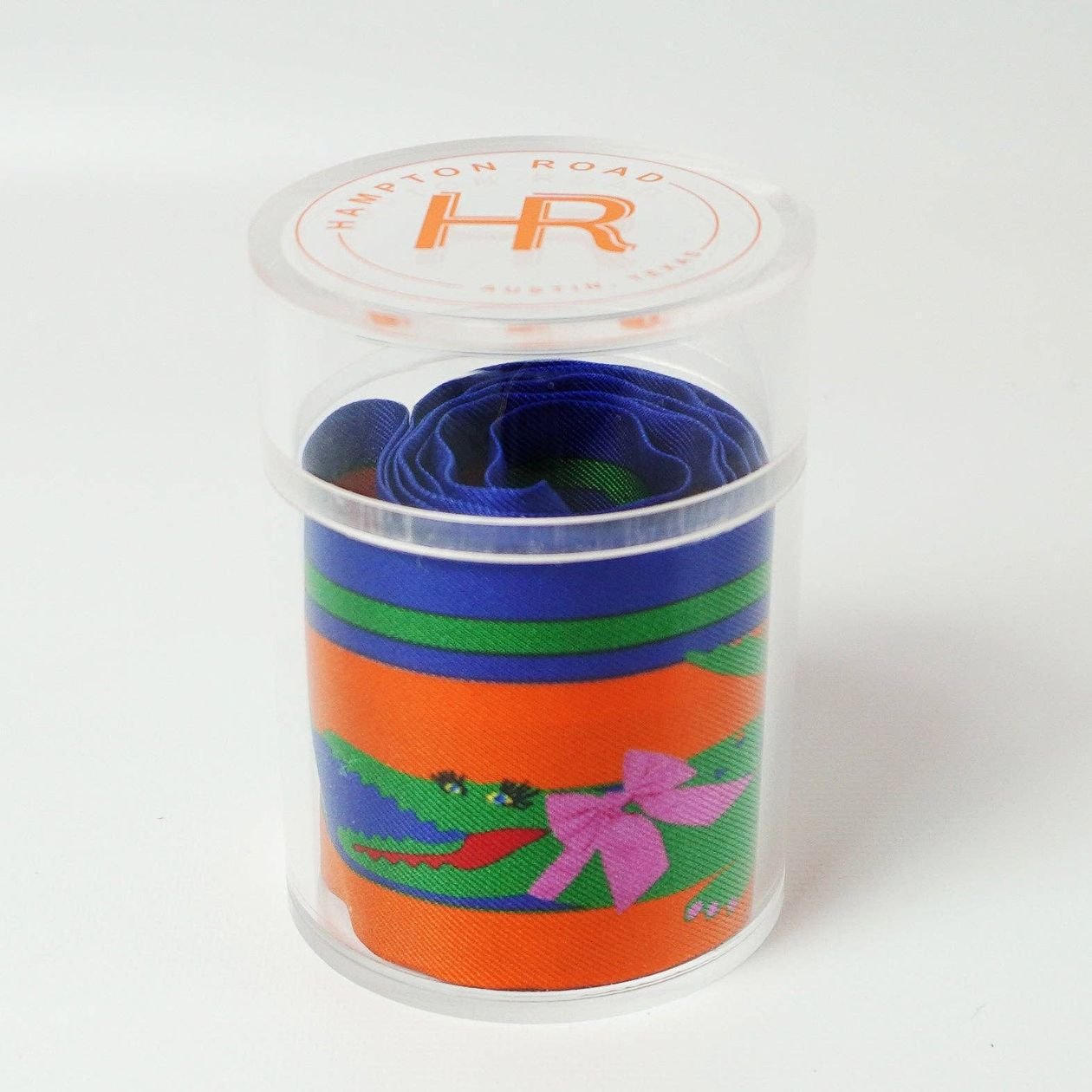 Dive into style with the Gators Glam Twillionaire Set, a double-sided silk skinny duo that perfectly blends fierce gator-inspired prints with elegant glamour. Crafted from smooth, lightweight silk twill, these scarves are designed to elevate any outfit—whether wrapped around your neck, tied on your wrist, or adorning your favorite handbag. Celebrate bold confidence and timeless chic with this versatile set from [Hampton Road]. Perfect for the University of Florida Gator fan.