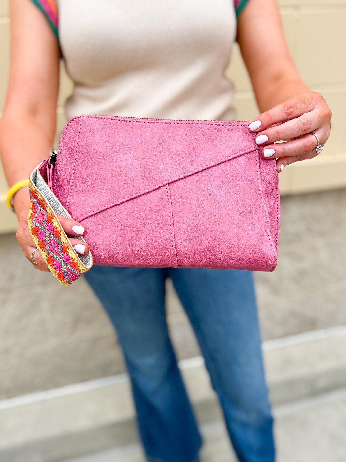 Pretty, practical, and packed with personality—the Gigi Crossbody in Pink Punch is your new favorite plus-one for every outing. With retro-inspired charm and a bold, juicy hue, this versatile bag offers three chic ways to wear it: as a crossbody, clutch, or wristlet. Crafted from antiqued vegan leather and finished with a removable woven strap, it's equal parts timeless and trendy.