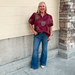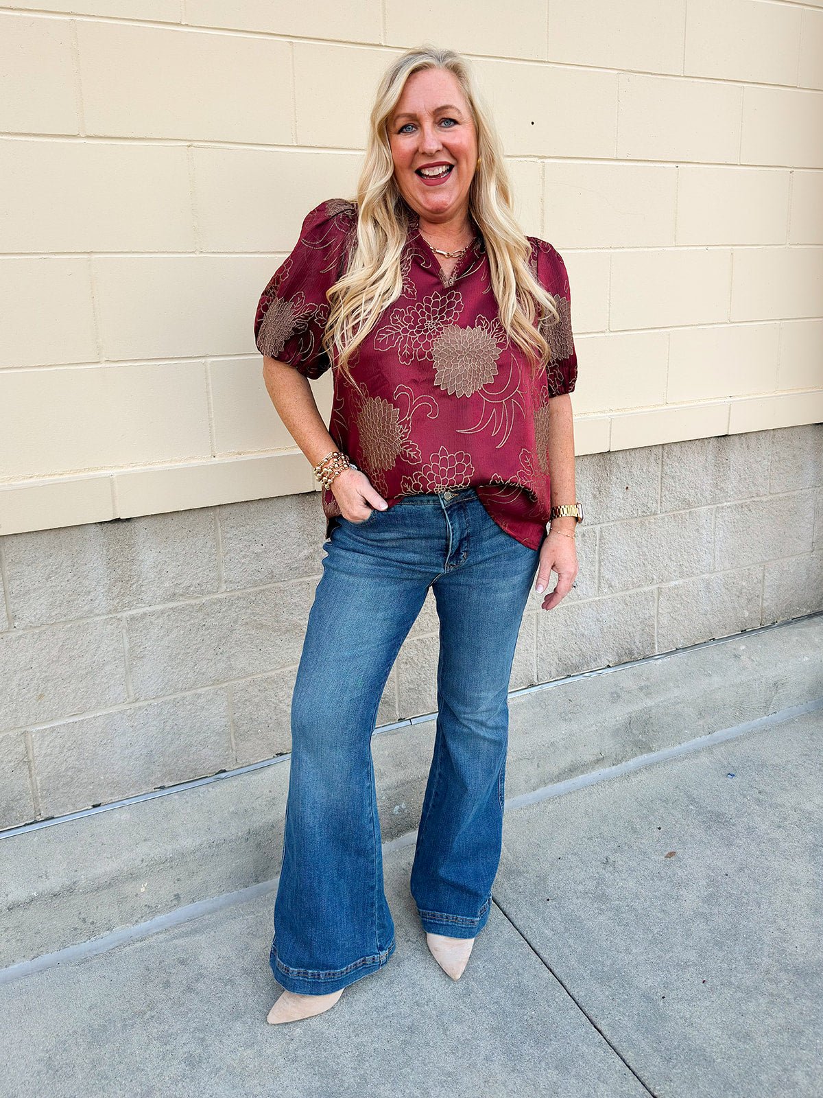 Elevate your everyday wardrobe with the Gilded Wine Puff Sleeve Top, a piece that balances romance and modern style. The rich wine hue serves as the perfect backdrop for subtle gold splotch accents, creating a look that’s both sophisticated and eye-catching. Crafted in a lightweight, breathable fabric, this top offers a soft drape that flatters your silhouette without overwhelming.