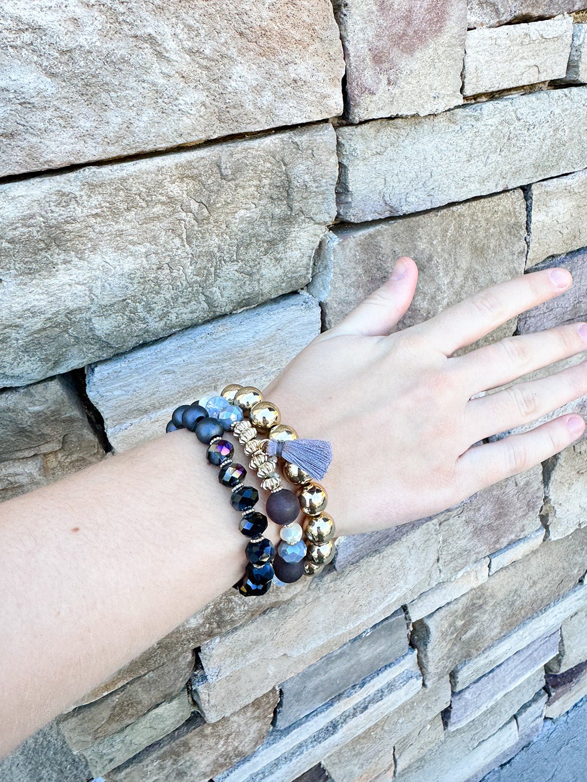 Glass Beads Tassel Pendant Layered Charm Bracelet in Black