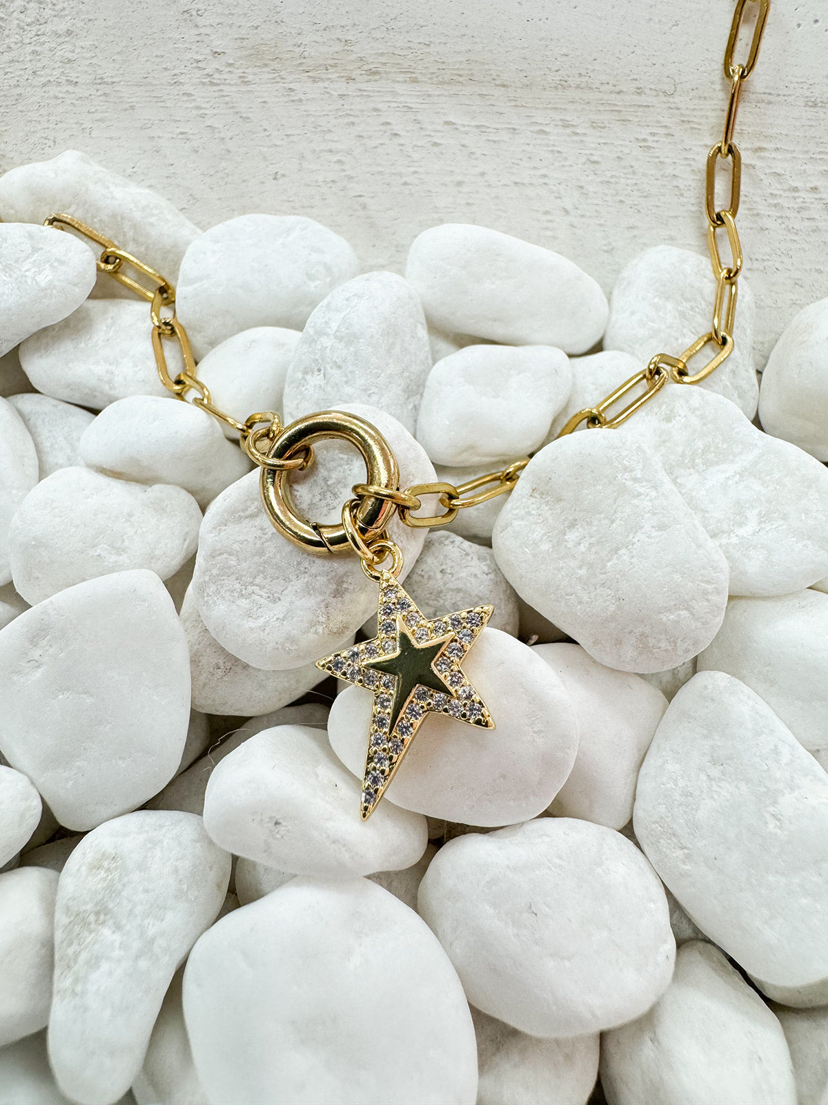 Add sparkle to your charm bar with this gold pave star charm. Featuring paved diamond stones and a high-quality finish, it's perfect for personalized jewelry.