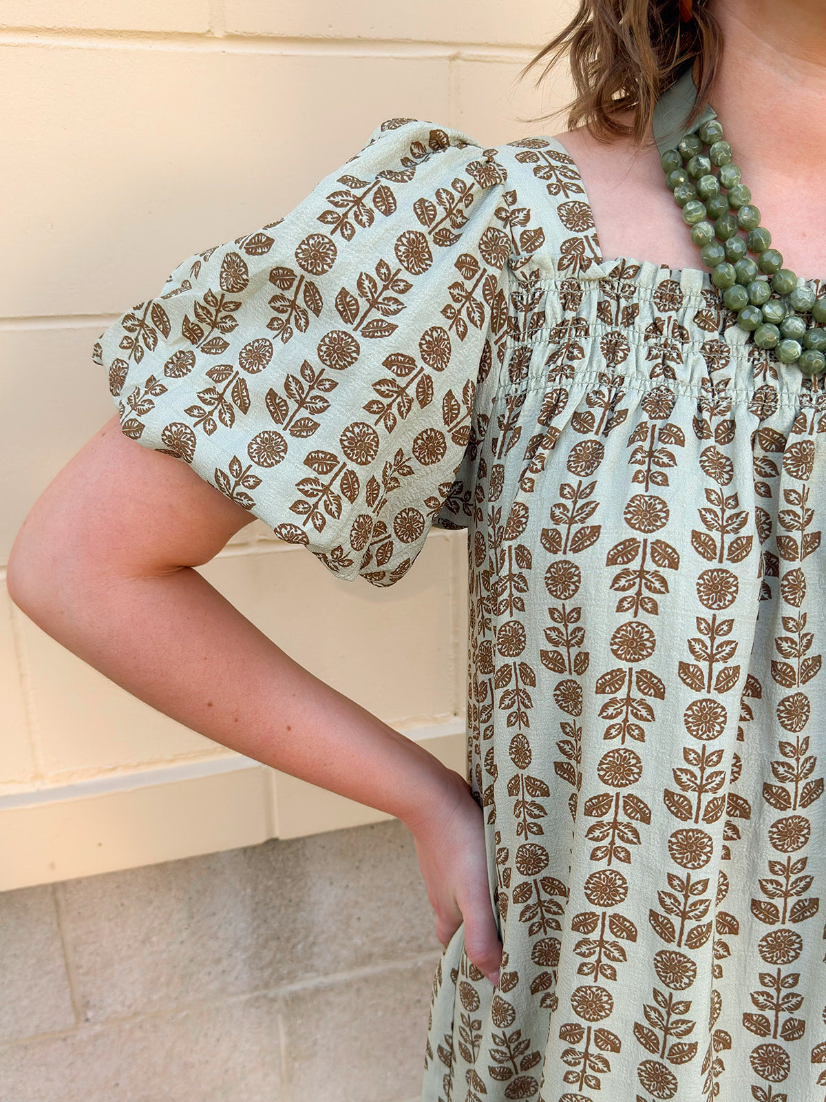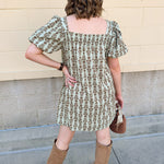 Looking for a dress that captures fall’s natural beauty with a soft, romantic touch? The Golden Grove Smocked Mini Dress is your go-to for effortless seasonal style. Designed in a light olive hue with a delicate tonal floral print, this dress blends feminine charm with modern ease. The smocked square neckline offers a comfortable, flattering fit, while the puff sleeves add graceful volume for that perfectly polished look.